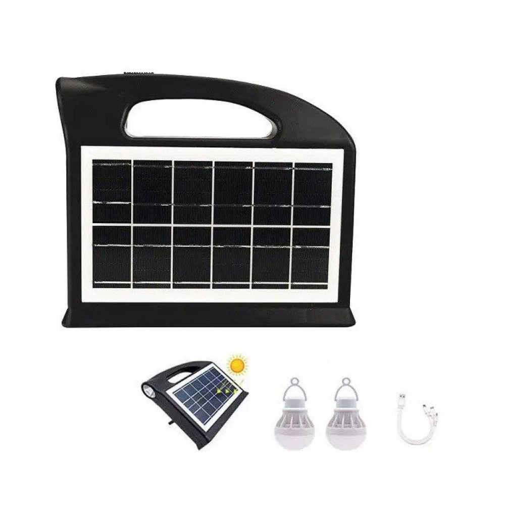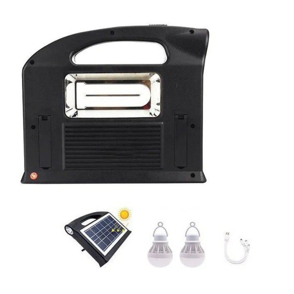 Основний ліхтар з акумулятором та вбудованою панеллю, 2 лампочки, Комплект дротів для заряджання смартфонів