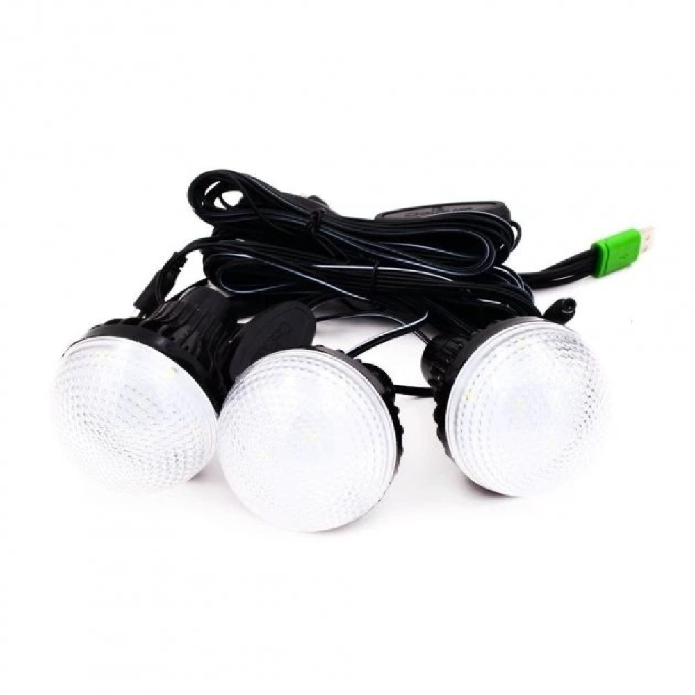 3 додаткові лампочки мають класичну форму колби та живляться від основного ліхтаря-акумулятора за допомогою кабелю завдовжки 2,5 м.
