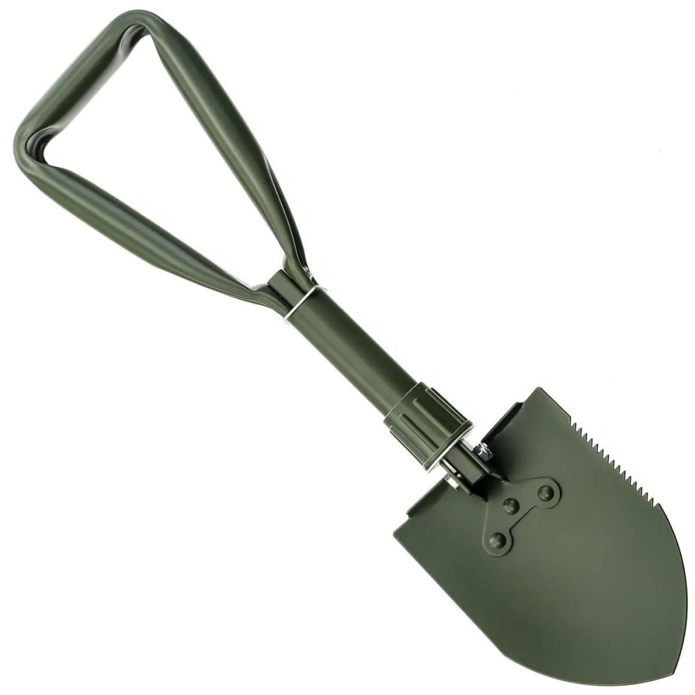 Компактна складна лопата зі сталевим лезом та металевою ручкою. З одного боку має зазубрені краї, тому може використовуватися як мотика.