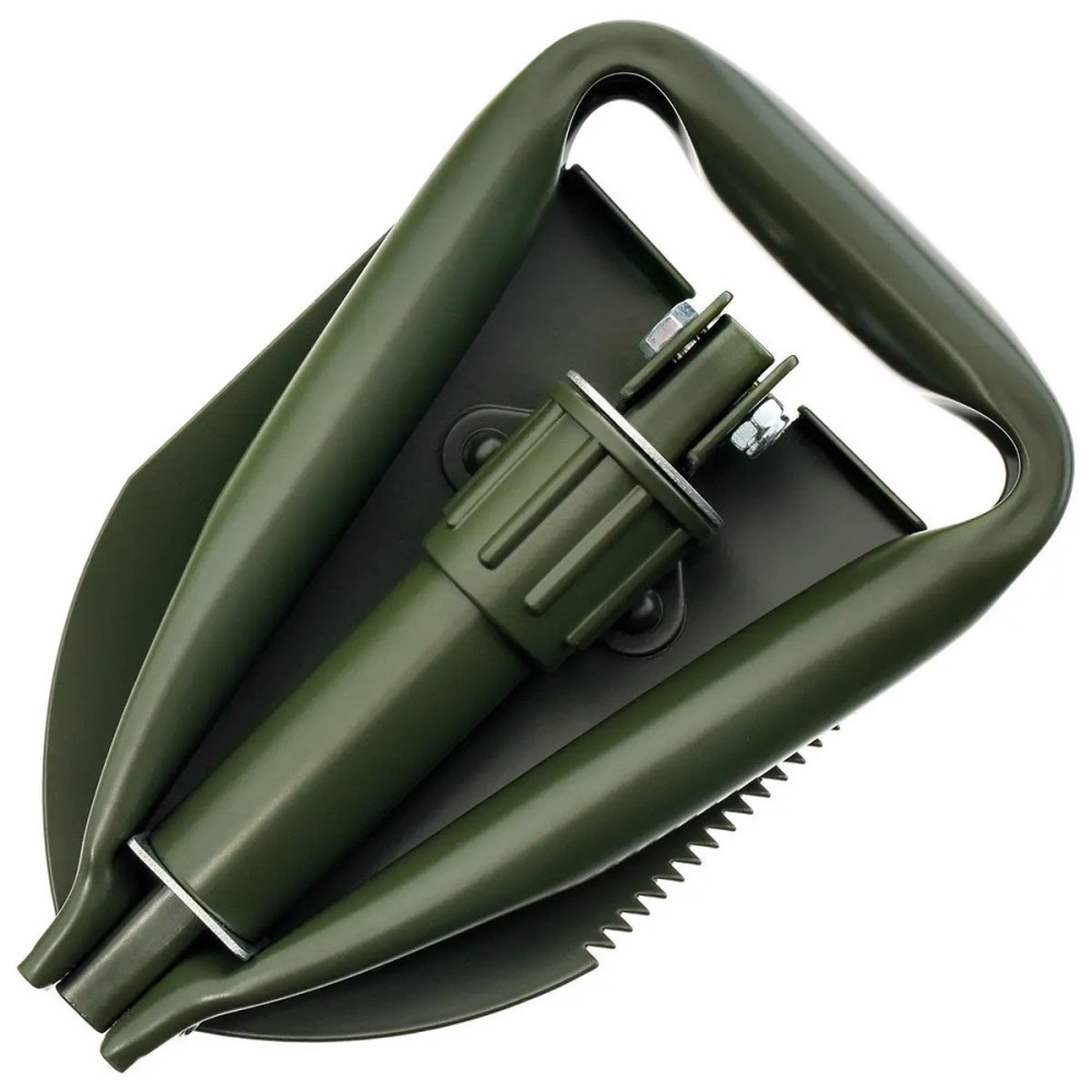Лопата штикова туристична саперна багатофункціональна з металевою ручкою та зазубреним краєм у непромокаємому чохлі Shovel 009 Зелений