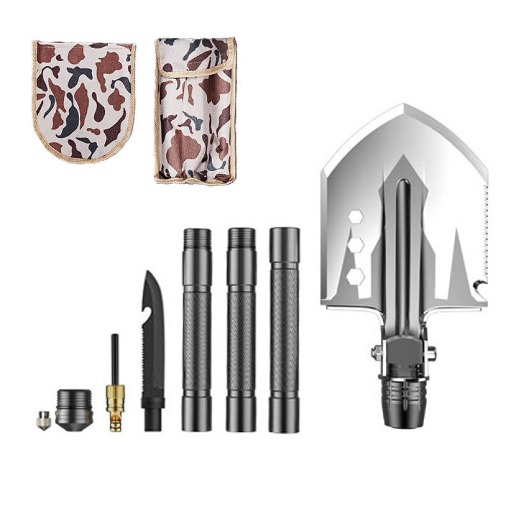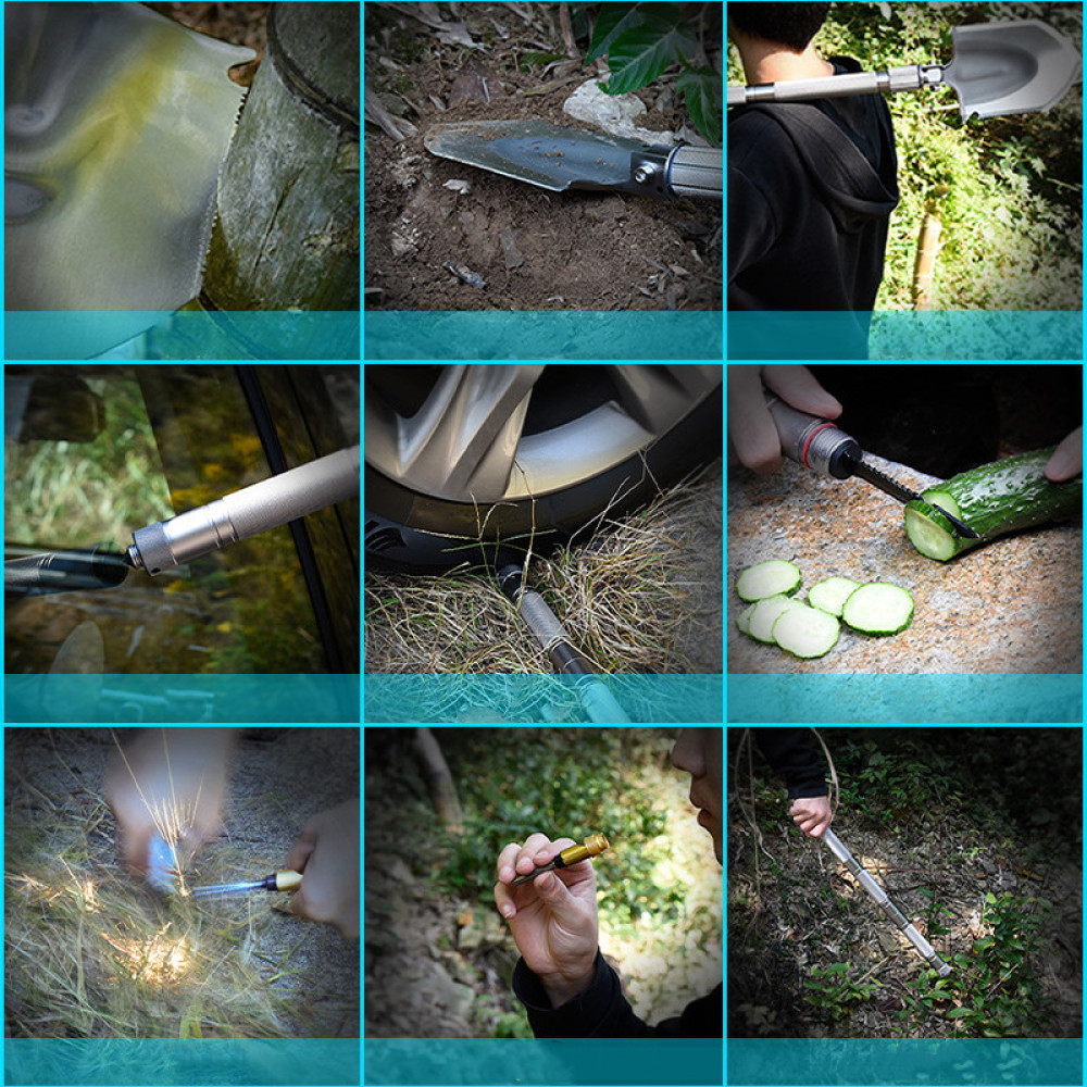 - 8в1 - Лопата, Пила, Ніж, Кремінь, Гайковий ключ, Відкривачка, Свисток, Склобій;