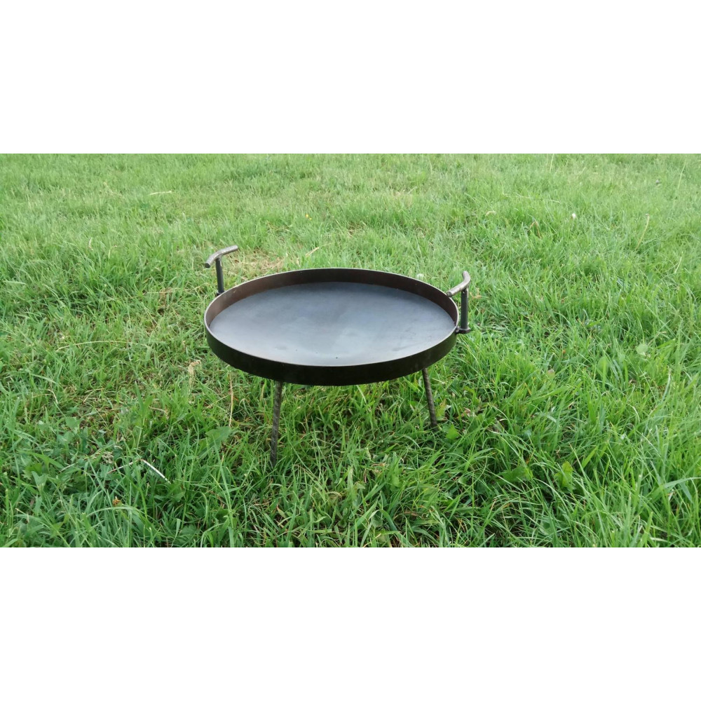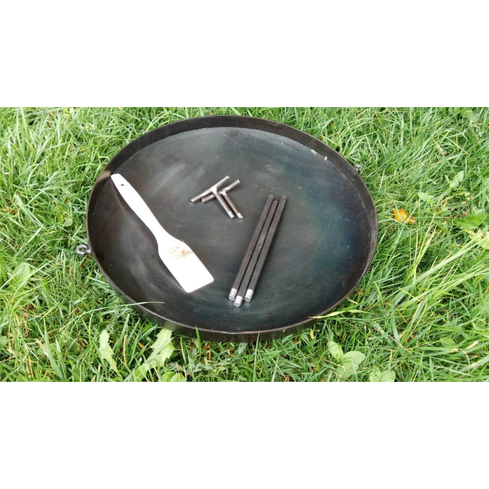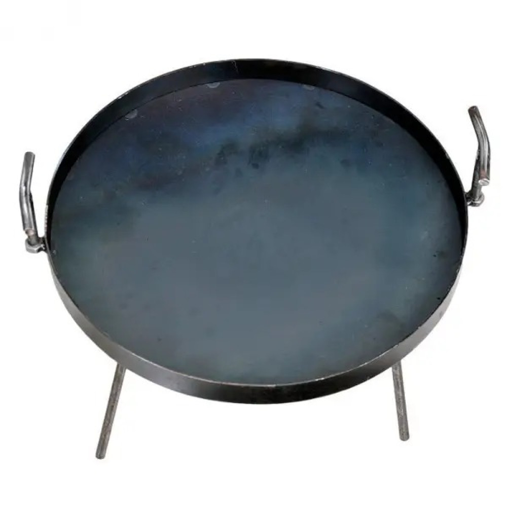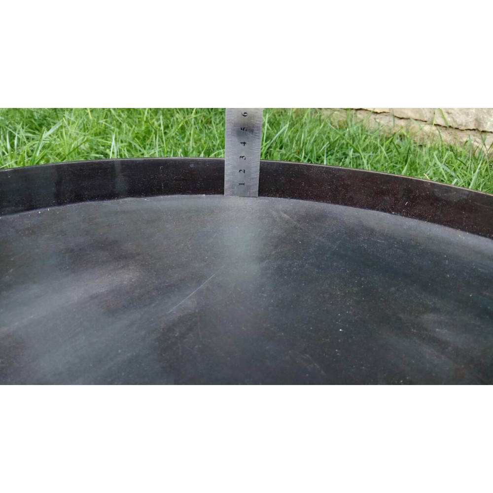 Кришка для сковороди з диска борони виготовлена з холоднокатаної сталі товщиною 1-1,2 мм. Матеріал міцний та довговічний, при нагріванні зберігає правильну форму, не деформується у процесі експлуатації, безпечний для здоров'я. Метал проходить ретельну обробку, не виділяє шкідливих речовин при нагріванні, витримує високі навантаження.