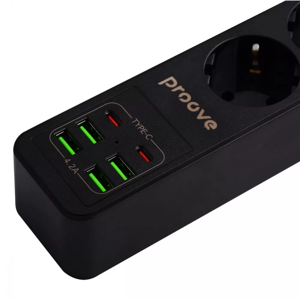 Мережевий подовжувач - це сучасне рішення для дому або офісу, що поєднує зручність використання, безпеку та стильний дизайн. Оснащений 4 стандартними розетками, 4 USB-портами та 2 Type-C портами, що дає змогу одночасно під'єднувати різноманітні пристрої: ноутбуки, телефони, планшети, побутову техніку та гаджети. Довжина кабелю становить 2 метри, що забезпечує зручний доступ до приладів навіть у важкодоступних місцях. Чорний колір корпусу додає пристрою сучасного вигляду та чудово вписується в будь-який інтер'єр.