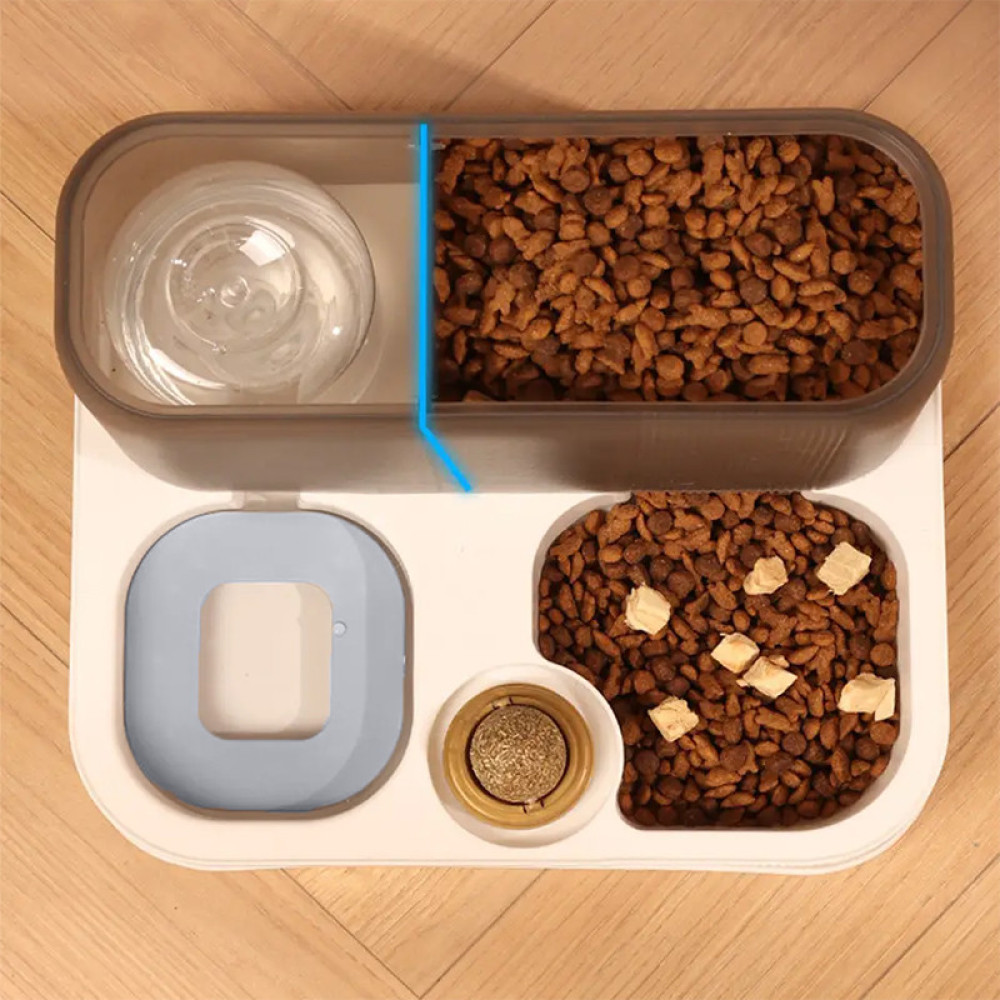 - Одна частина миски призначена для сухого корму об'ємом 2,8 л, інша - для води об'ємом 1 л.