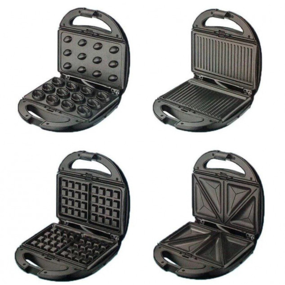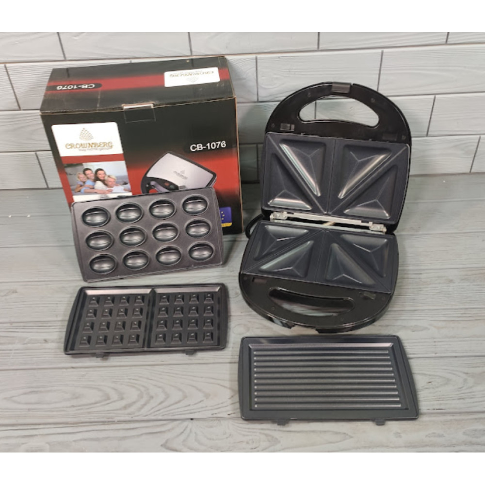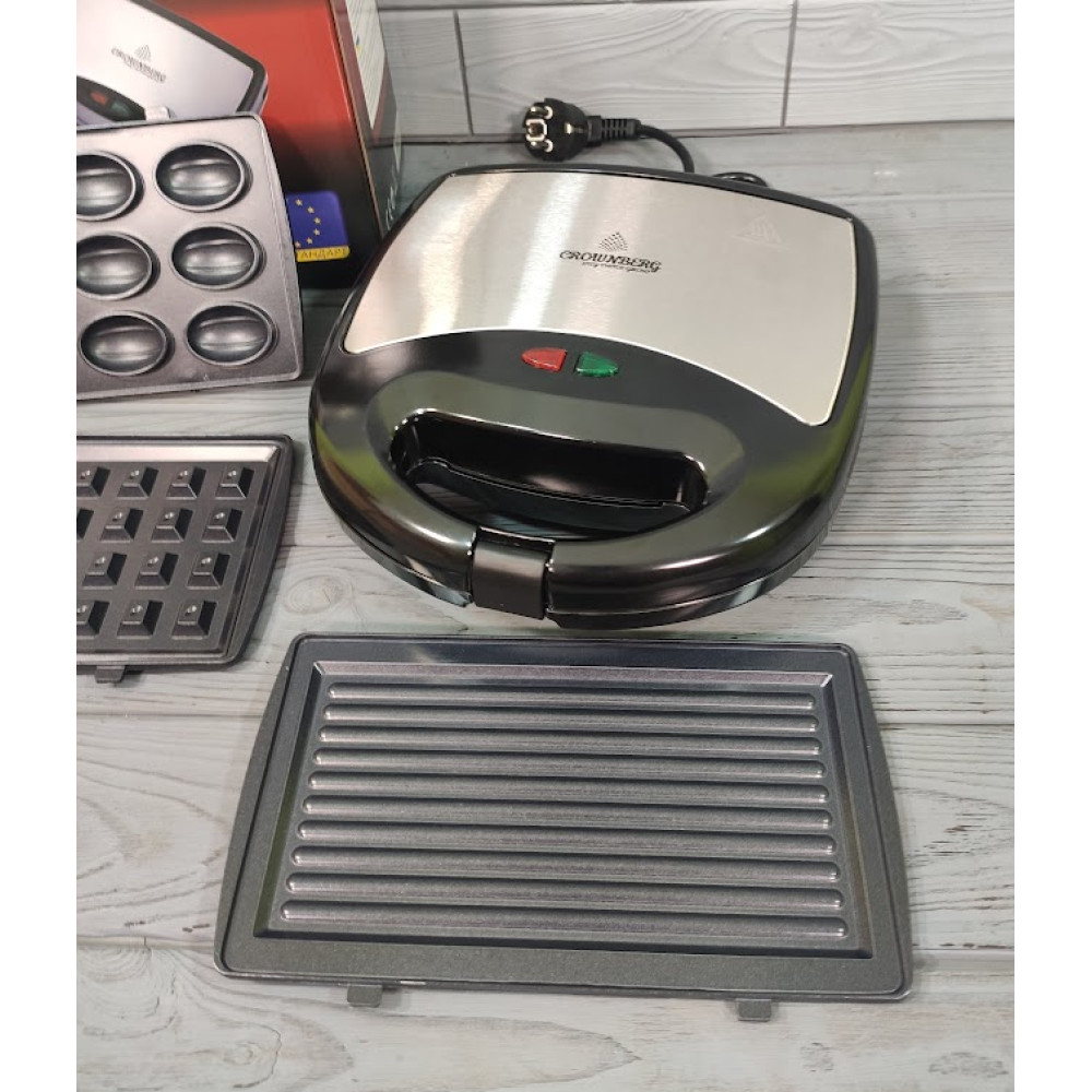Мультимейкер Crownberg CB-1076 - це якісний пристрій, який дозволить вам приготувати велику кількість страв. Він поєднує в собі 4 кухонні прилади: мультигриль, орішницю, сендвічницю та вафельницю.