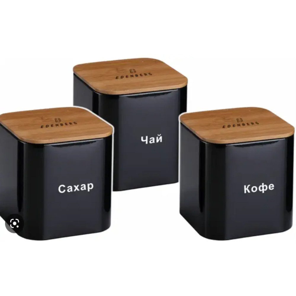 - Набір ємностей для зберігання сипучих продуктів кави/чаю/цукору Edenberg (EB-144) виготовлений з високоякісної нержавіючої сталі.