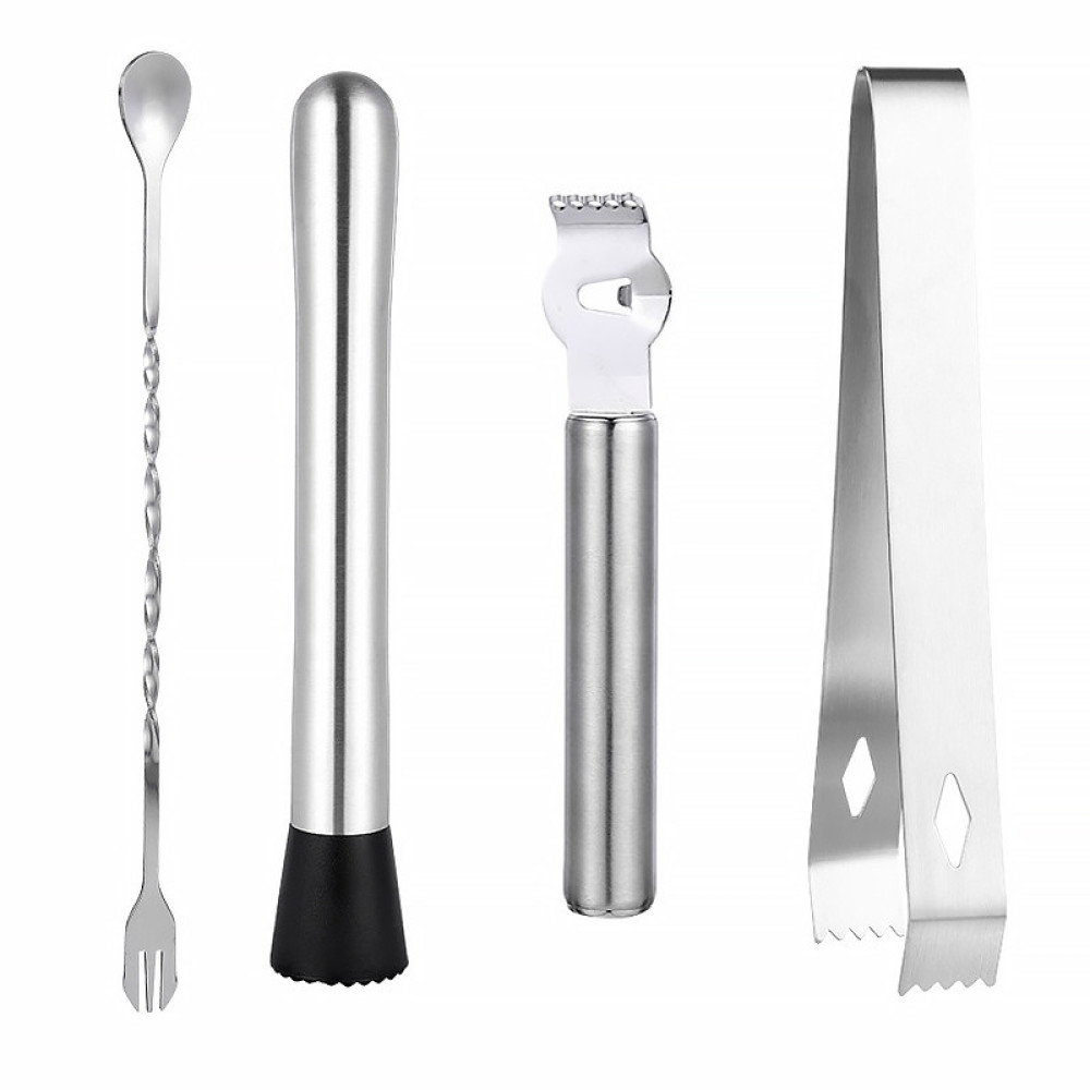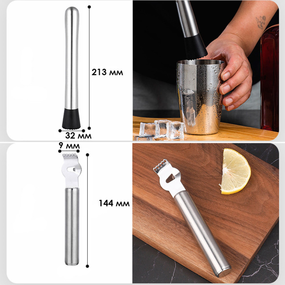 У комплекті є все необхідне для створення простих коктейлів, так і складніших і нових експериментів. Впоратися з ними зможе навіть новачок. Крім цього, тримає їх в одному місці підставка під інструменти, що зручно та практично.