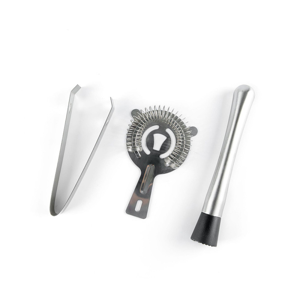 - Всі предмети виготовлені з нержавіючої сталі, тому купуючи комплект приладдя для бару, будьте впевнені, що він прослужить вам дуже довго.