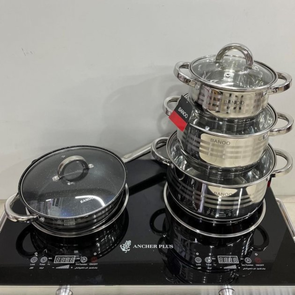- Набір посуду Banoo BN-5004 включає в себе все необхідне для варіння і жарки продуктів.