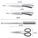 <p>Ніж топірець (17,5 см) - 1 шт.<br>Ніж кухарський (20 см) - 1 шт.<br>Ніж для хліба (20 см) - 1 шт.<br>Ніж універсальний (12, 5 см) - 1 шт.<br>Ніж для чищення овочів (8,75 см) - 1 шт.<br>Точилка Муссат (18,75 см) - 1 шт.<br>Ножиці - 1 шт.<br> Овочечистка - 1 шт.<br>Підставка - 1 шт.</p>