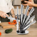 - Набір ножів Edenberg EB-3618 Влучний набір з дев'яти речей. Такий стильний дизайн прикрасить інтер'єр кухні і придасть вишуканості будиночку. Оригінал зберігання кухонних ножів надає особливого вигляду.