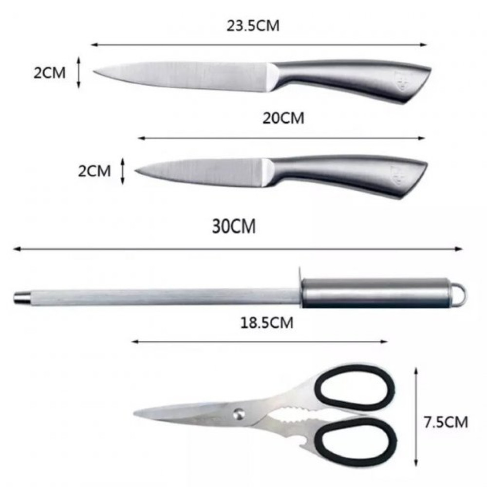 - Набір комплектується спеціальною підставкою для зручного зберігання ножа. Кожен ніж має своє місце.