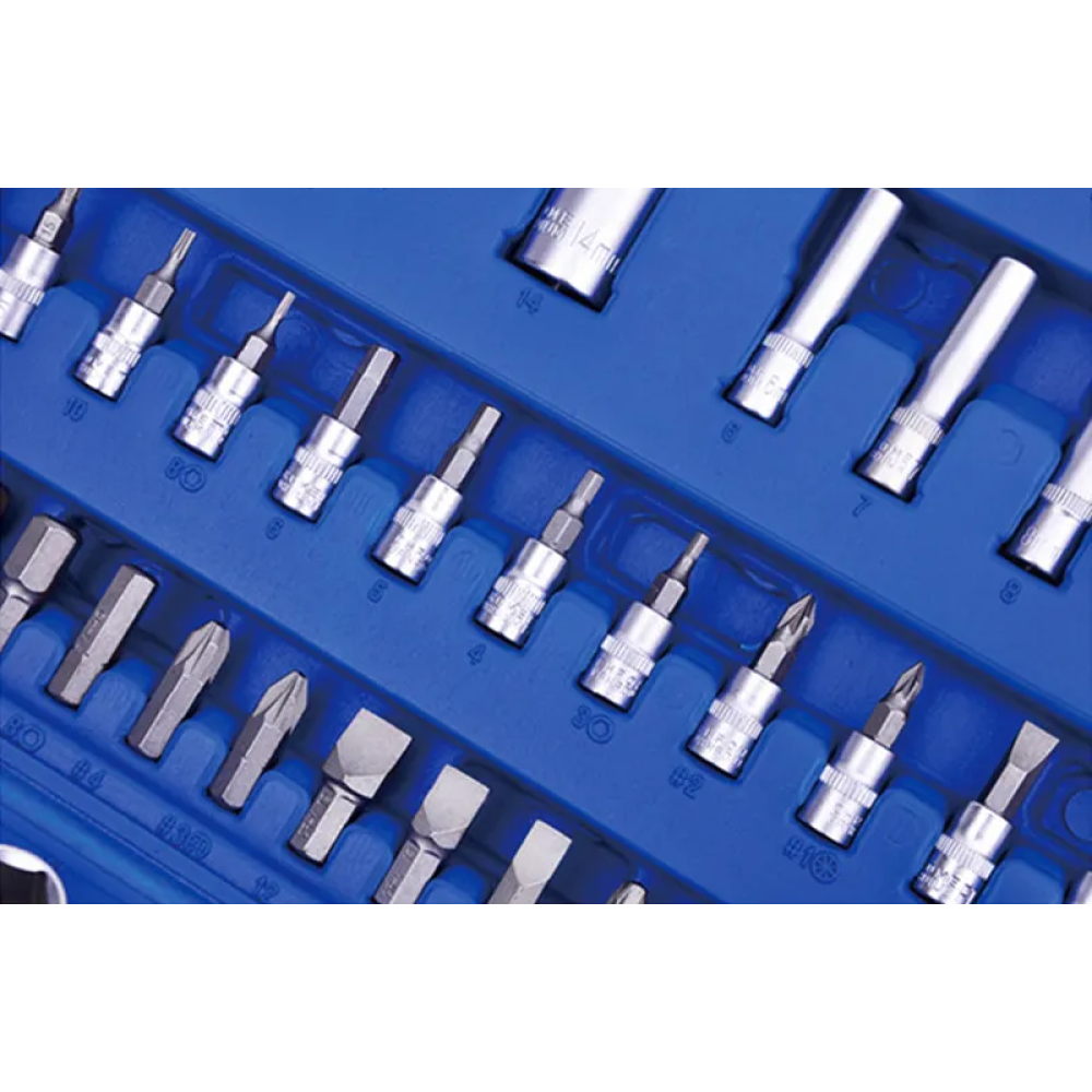 Набір інструменту від 94 предметів можна з повною впевненістю назвати універсальним. У набір входять практично всі необхідні інструменти, як головки так і біти, які стануть вам у нагоді при ремонті автомобіля самостійно.