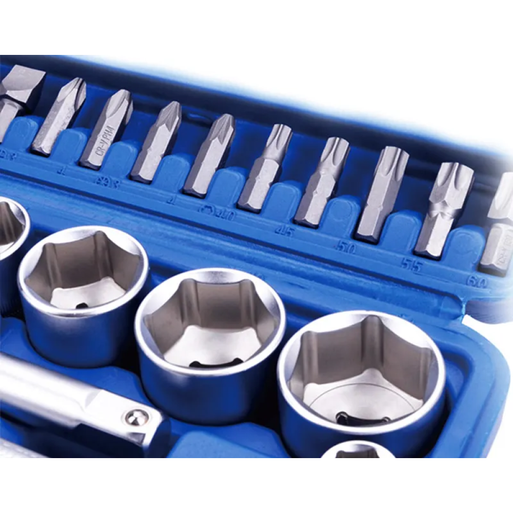 Інструмент відрізняється демократично ціною, виконаний із міцної хром-ванадієвої сталі та відповідає всім сучасним вимогам до наборів інструментів для побутового використання.