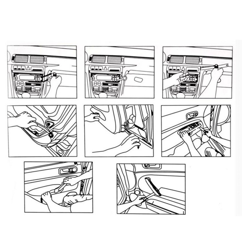 Цей набір інструментів для демонтажу автомобільної аудіосистеми - ідеальний вибір для автолюбителів, механіків і всіх, хто шукає професійний, зручний і ефективний спосіб зняти аудіосистему, пластикові панелі та інші декоративні елементи в салоні автомобіля.
