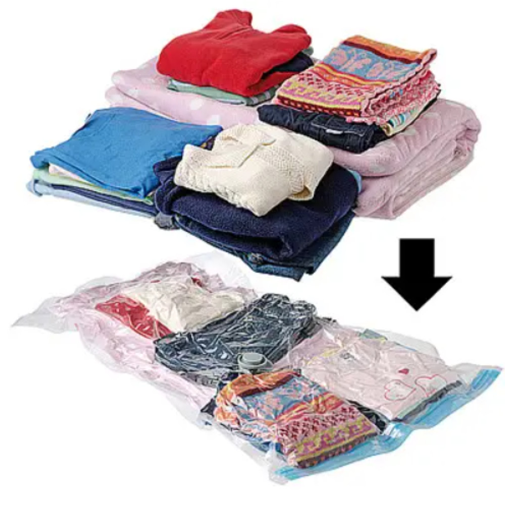 При упаковці одягу в такий пакет його обсяг зменшується до 75%. Таким чином, у шафі значно збільшиться місце зберігання. Пакет можна застосовувати для будь-якого виду тканини та матеріалу: синтепон, холлофайбер, пух, перо, шерсть, бавовна, синтетика, віскоза, хутро, силікон. Пір'яні подушки та ковдри рекомендується зменшувати на 65%, щоб не пошкодити перо. Купуйте набір вакуумних пакетів і більше не думайте про те, де зберігати одяг у міжсезонний час так, щоб він не займав багато місця в шафі. Використовуючи пакети, ви надійно захистите речі від проникнення молі, запахів та різноманітних забруднень. У комплектацію входять 5 вакуумних пакетів та насос.