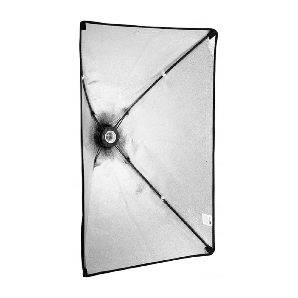 Патрони E27 не вбудовані в софтбокс і кріпляться до нього за допомогою спиць, що забезпечує простоту конструкції та її підвищену зносостійкість у порівнянні із вбудованими варіантами. Вимикач розміщується на корпусі та спрощує експлуатацію.