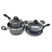 - Набір складається з 2-х каструль, ковшика та сковороди (все з антипригарним мармуровим покриттям)