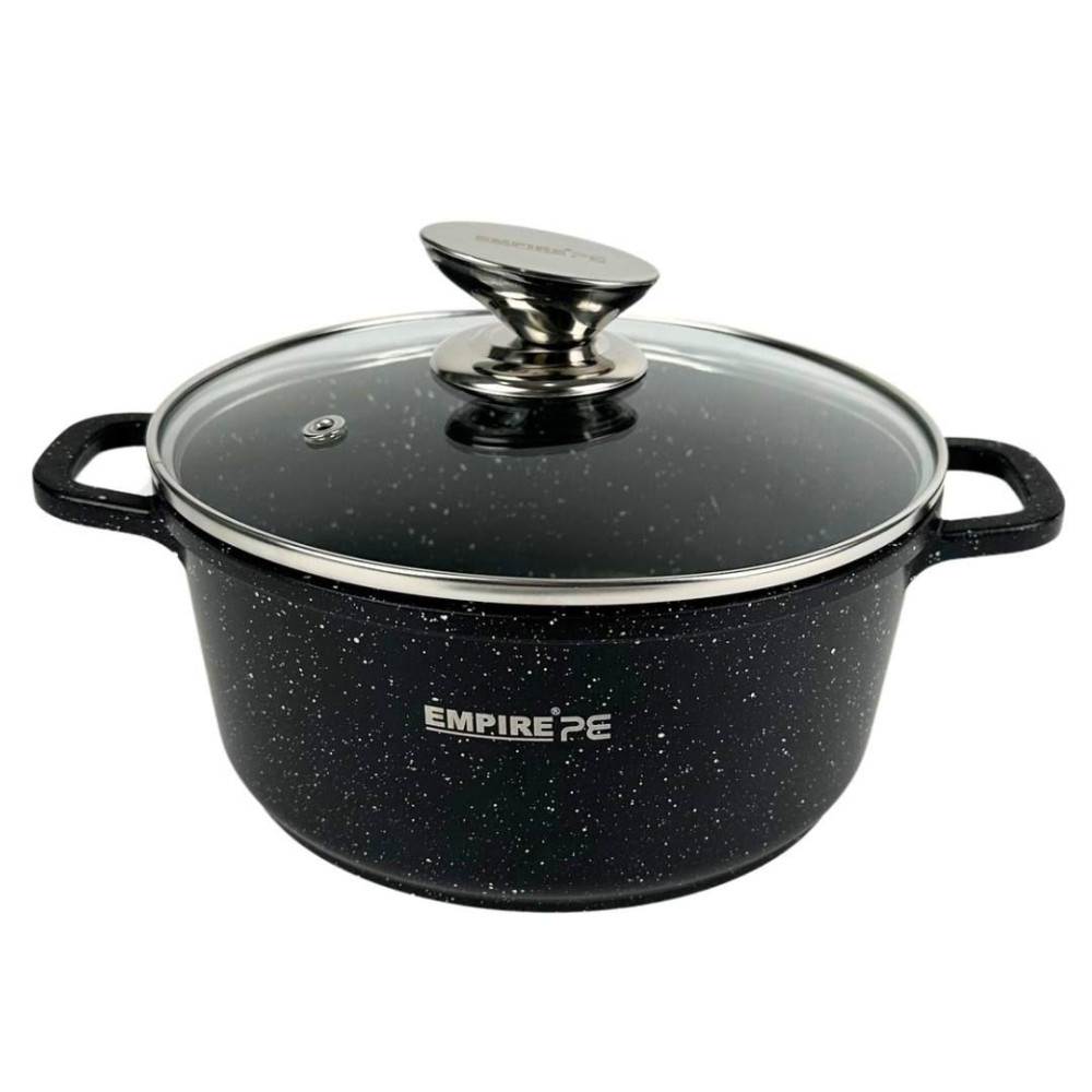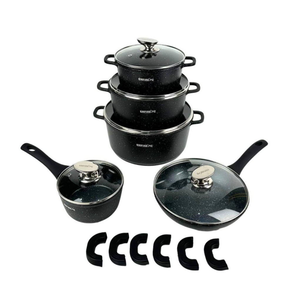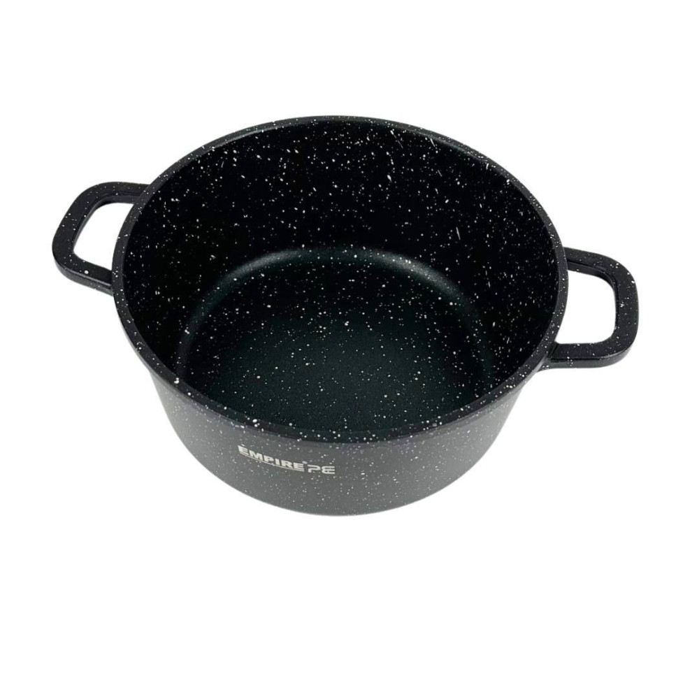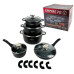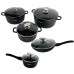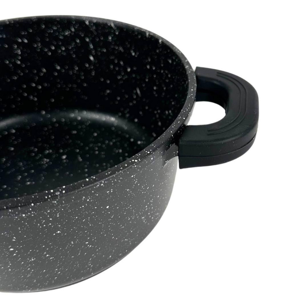 Каструлі та сковорідка виготовлені з литого алюмінію. Це високоякісний, екологічно чистий матеріал, що має високу теплопровідність, гігієнічність і невелику вагу. Тришарове гранітне антипригарне покриття, що не містить шкідливих PFOA речовин, має високу стійкість до стирання, подряпин та інших механічних пошкоджень. Завдяки своєму складу таке покриття легко мити.