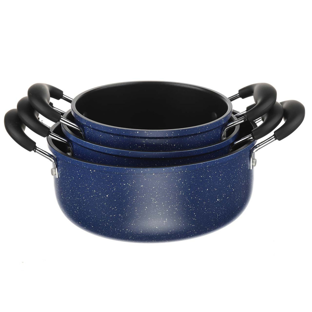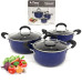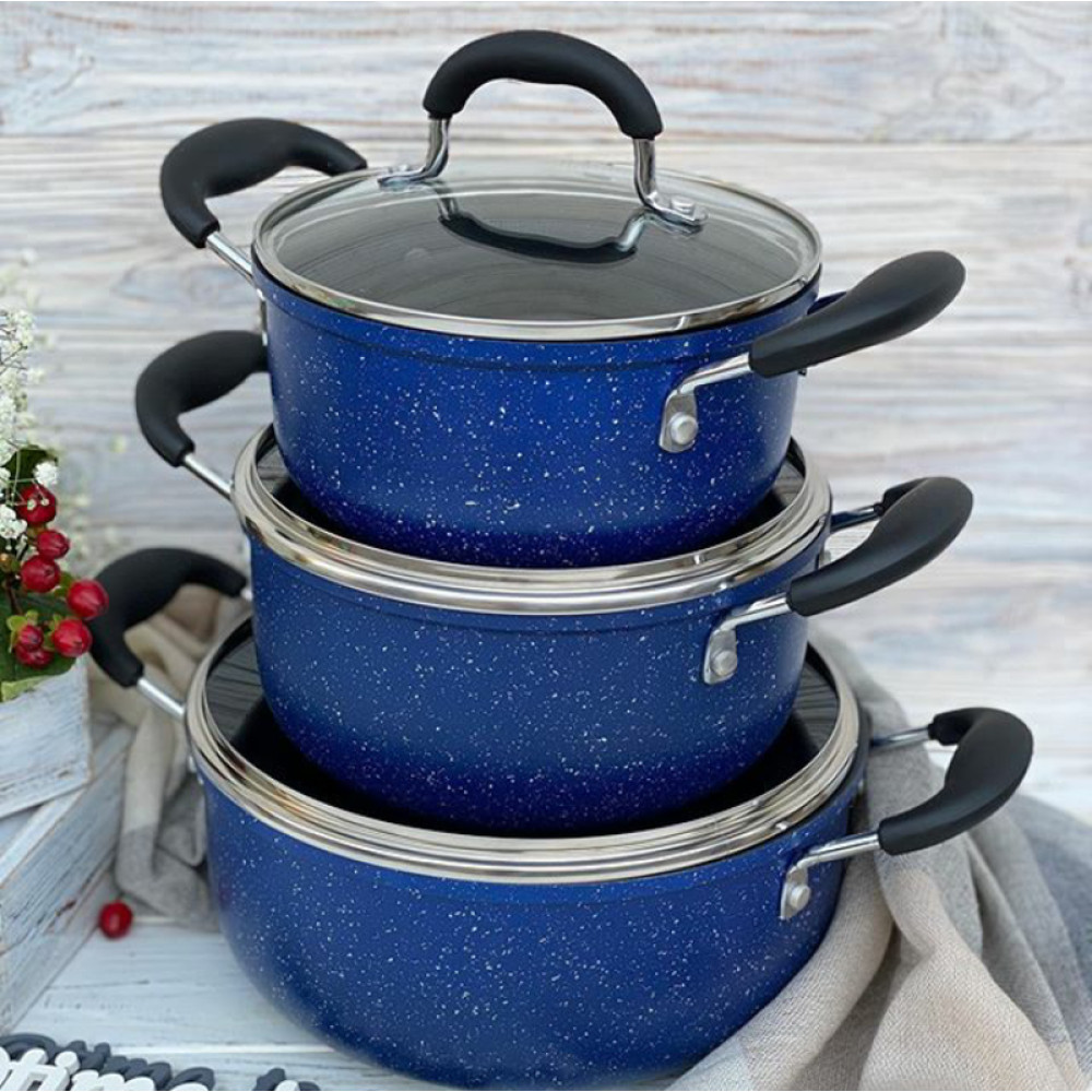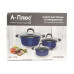 Набір каструль A-PLUS 6 предметів 1742 виготовлений з алюмінію. Користується надзвичайним попитом у професійних кухарів та просто любителів смачно готувати різноманітні кухонні шедеври. У комплекті йдуть кришки з термостійкого скла з підсилюючим обідком з нержавіючої сталі. Кришки оснащені паровідведенням. Каструлі можна використовувати на плитах будь-якого типу, включаючи індукційні. Внутрішня поверхня має мармурове антипригарне покриття. Для миття можна використовувати посудомийну машину.