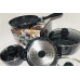 Набір посуду з високоякісного алюмінієвого сплаву з мармуровим покриттям, має товсті стінки та дно, що найкраще підходить для рівномірного розподілу та збереження тепла, а також відрізняється високою міцністю та довговічністю. Спеціальне багатошарове дно забезпечує рівномірне нагрівання і утримує тепло протягом тривалого часу. Стійко до механічних пошкоджень та високої температури. Міцні литі ручки на корпусі, скляна термостійка кришка з отвором для виходу пари і металевим ободом. Ручки на кришках виготовлені з бакеліту.