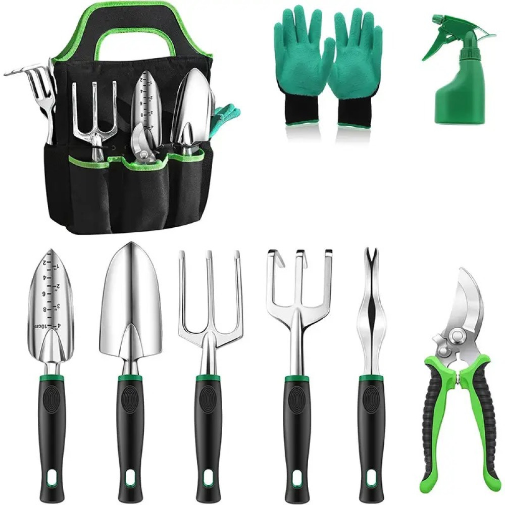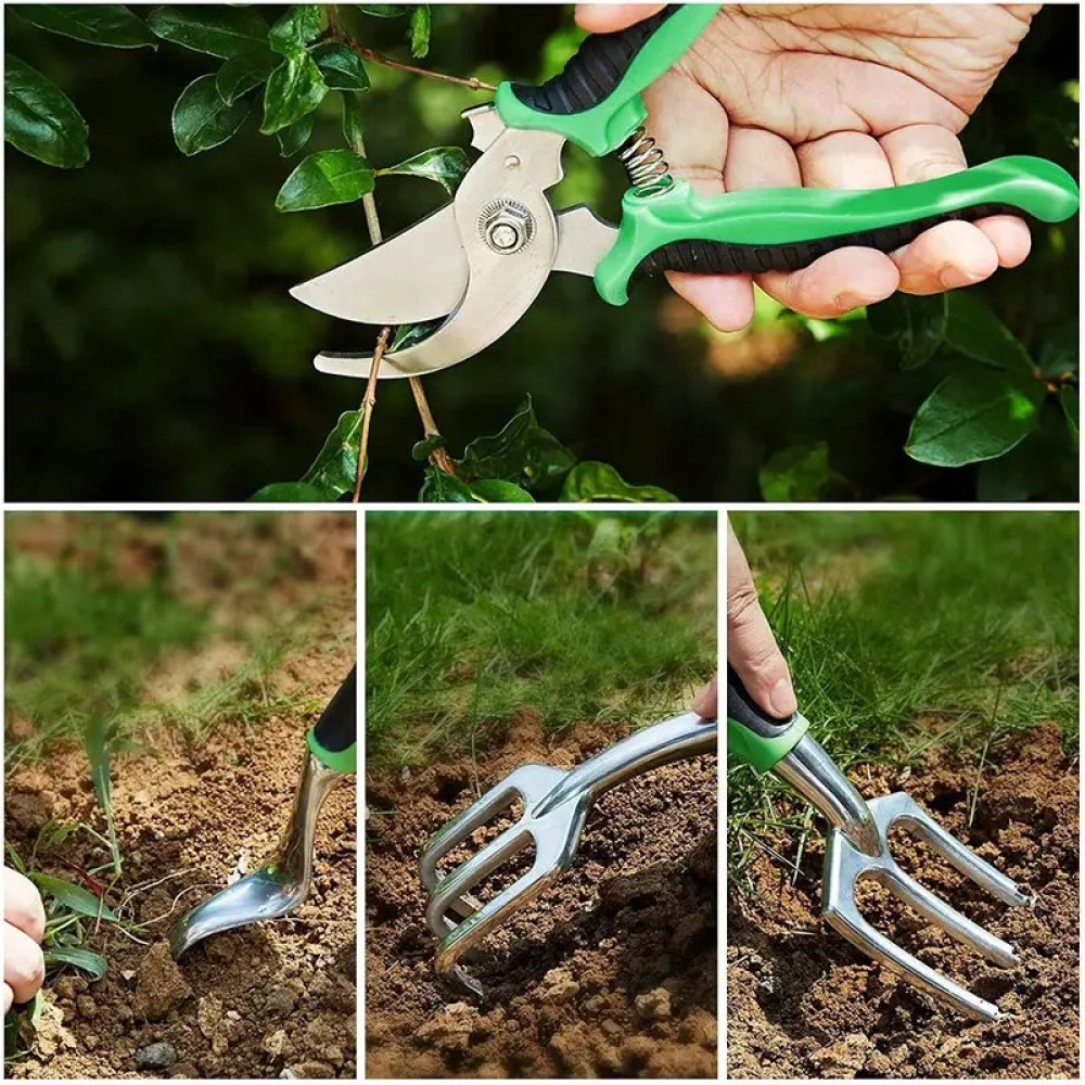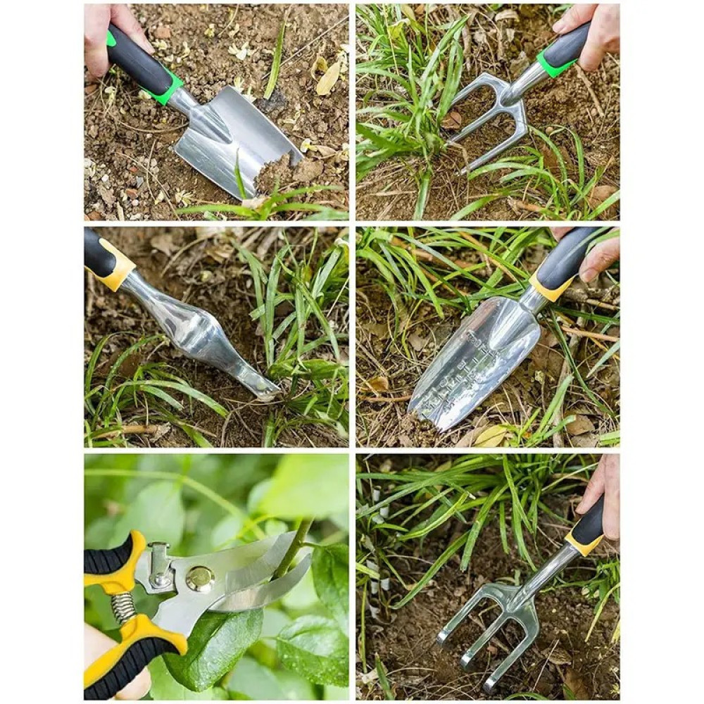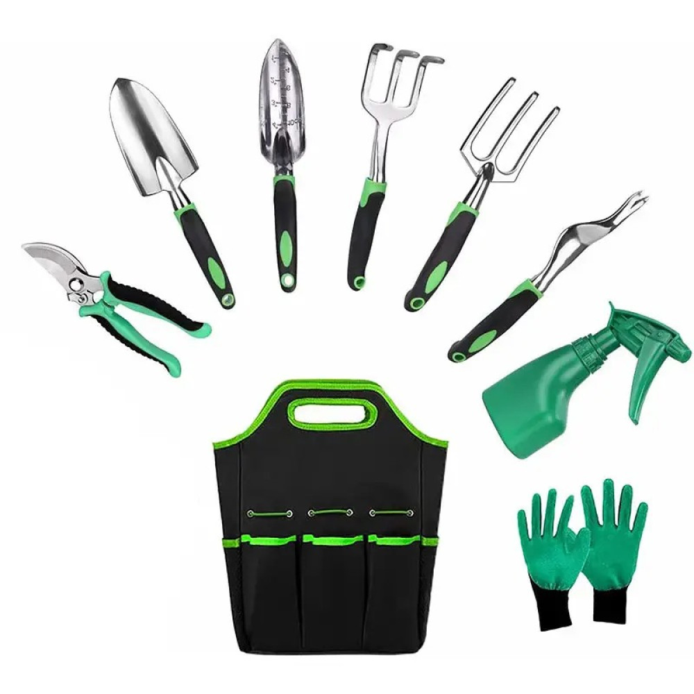 Інструменти з 9 предметів можуть задовольнити всі ваші садові потреби в приміщенні та на відкритому повітрі, такі як обрізка, копка, прополювання, розпушування ґрунту, пересадка та інші садові роботи.