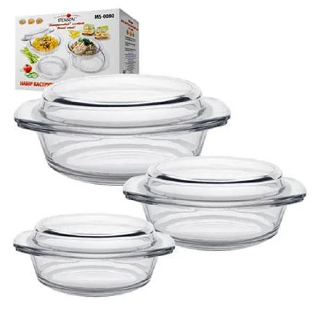 Набір скляних каструль із кришками "Stenson" MS-0080 - це набір якісних, термоскляних каструль різного об'єму та форми. Каструлі Stenson MS-0080 найкраще підходять для приготування страв у духових та мікрохвильових печах, адже вони виготовлені з жароміцного скла та витримують різницю температур до 180 градусів. Стійко до механічних ударних навантажень, легко миється. Використовується в духовках, мікрохвильових печах, посудомийних машинах.
