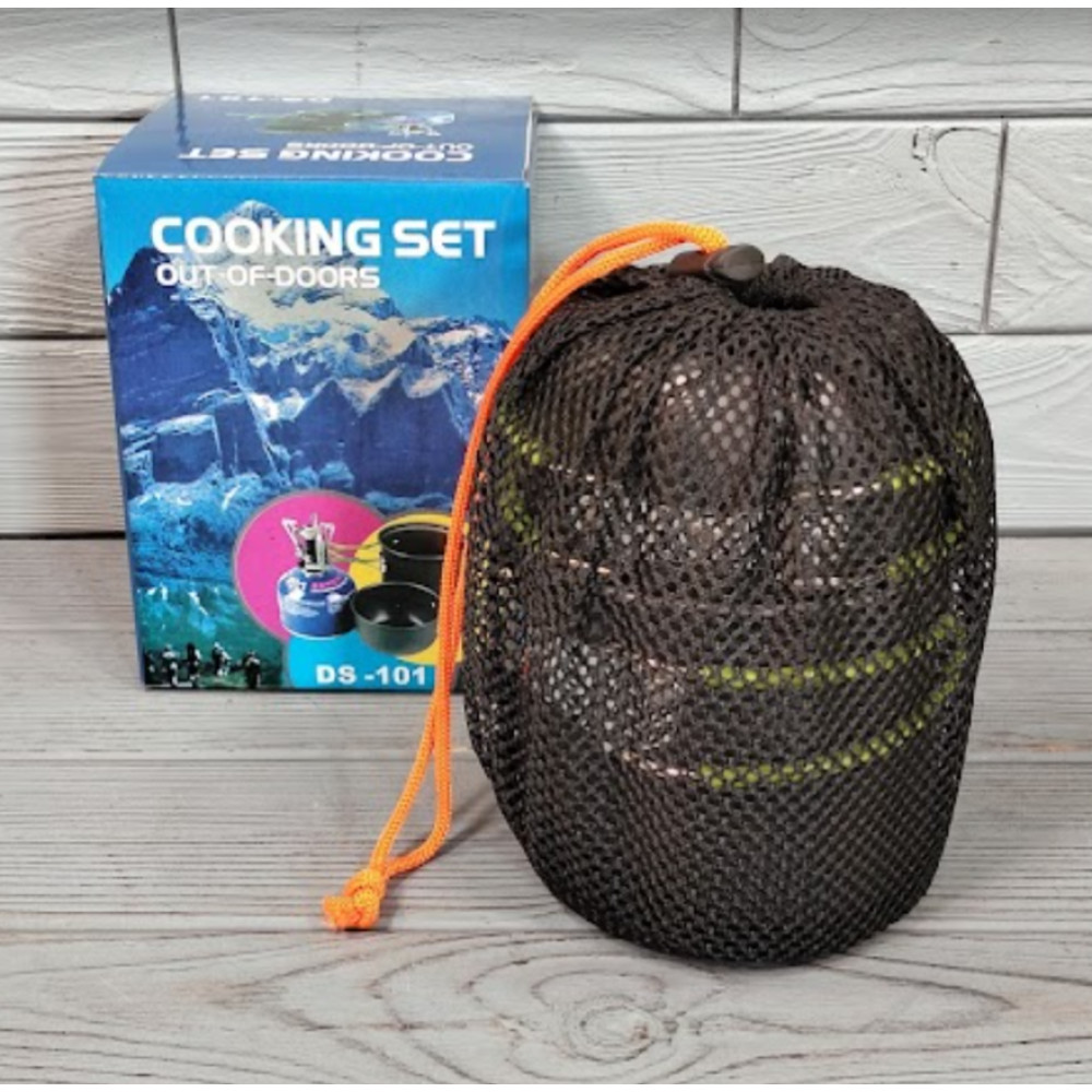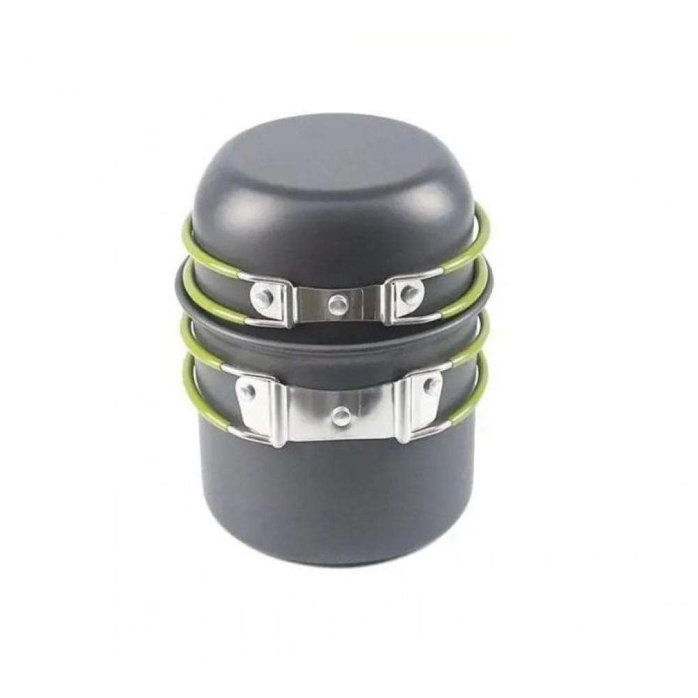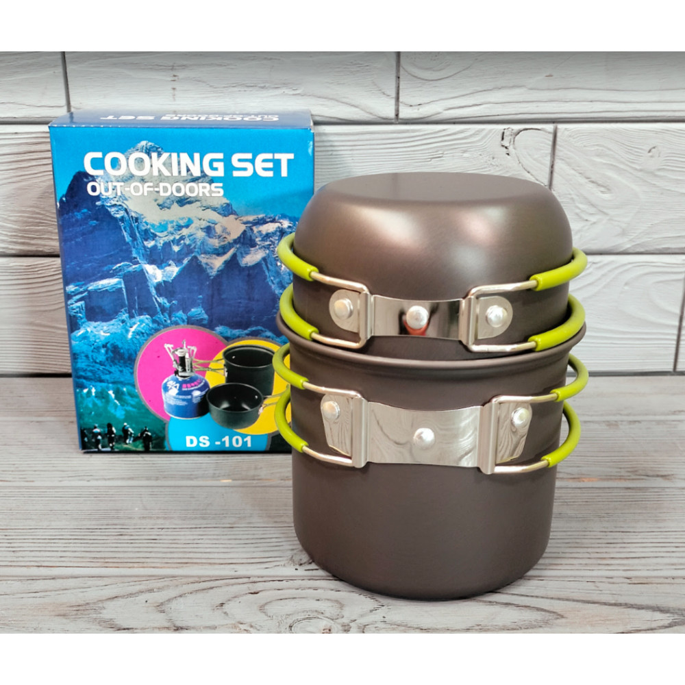 Компактний та легкий набір туристичного посуду DS-101 виготовлений з алюмінієвого сплаву, складається з котелка та чашки зі складними ручками та призначений для використання однією людиною. Котелок і чашка компактно з'єднуються між собою, а всередину можна помістити пальник та газовий картридж до нього. Ручки-метелики котелків покриті ізоляцією для запобігання опікам рук під час приготування їжі на пальнику.