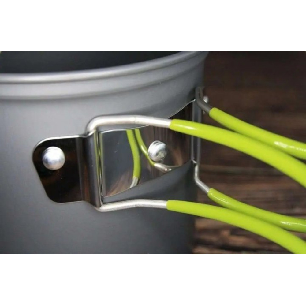 - Компактний та легкий (всього 250 г) набір туристичного посуду DS-101 виготовлений із ультралегкого алюмінієвого сплаву.