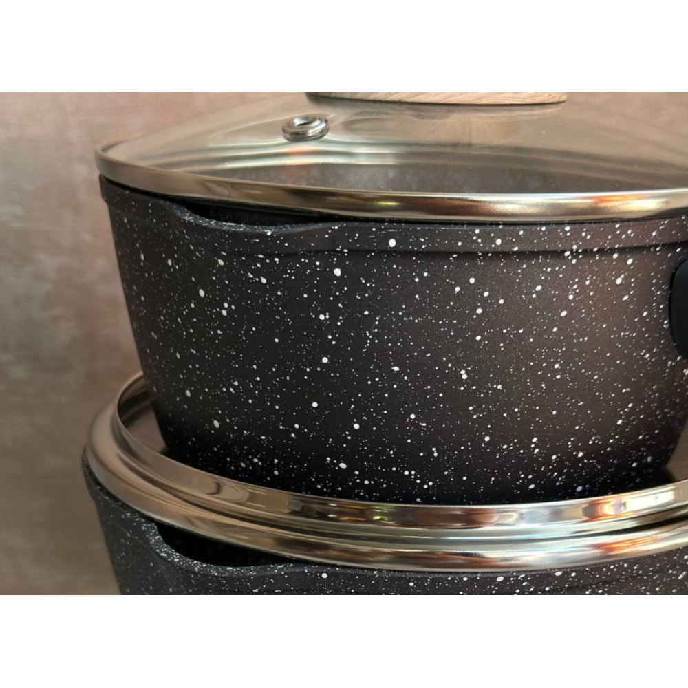 Ще одна перевага – термостійкі ручки. Вони не тільки додають стильний акцент, але й забезпечують комфортне та безпечне захоплення. Навіть за високих температур вони залишаються прохолодними на дотик, захищаючи ваші руки від опіків.