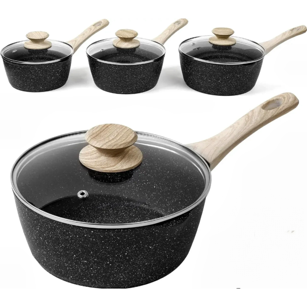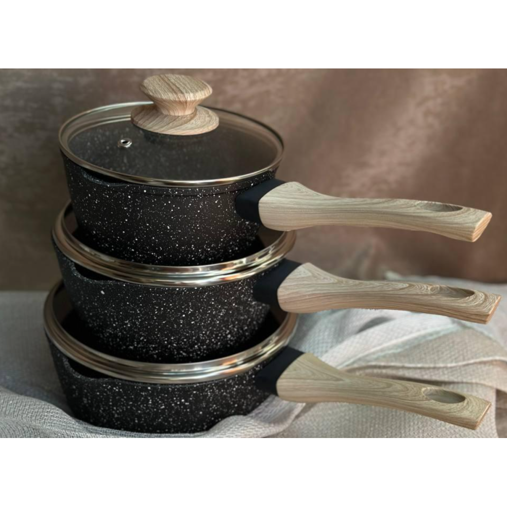 Набір сотейників з антипригарним покриттям RB-777 (16, 17 та 18 см, об'єми 1,2, 1,5 та 2 літри) – це незамінний помічник на кухні для тих, хто цінує якість та зручність. Головна особливість цього набору – антипригарне покриття найвищого класу, яке дозволяє готувати страви без використання олії та жиру. Уявіть, як легко їжа ковзає поверхнею, без найменшого опору, не прилипає і зберігає всі корисні властивості продуктів. Це робить готування не тільки приємним, але й здоровішим.