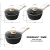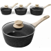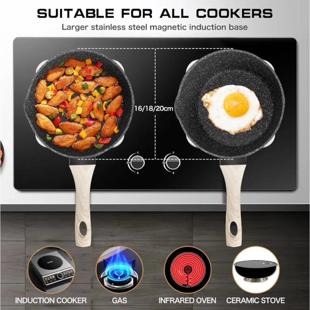 Матеріали преміум-класу гарантують довговічність: ці сотейники створені, щоби служити роками, витримуючи інтенсивну експлуатацію. Набір підходить для всіх типів плит – чи то газова, електрична, керамічна чи індукційна. Ви можете використовувати його в будь-якому куточку кухні, не замислюючись про сумісність.