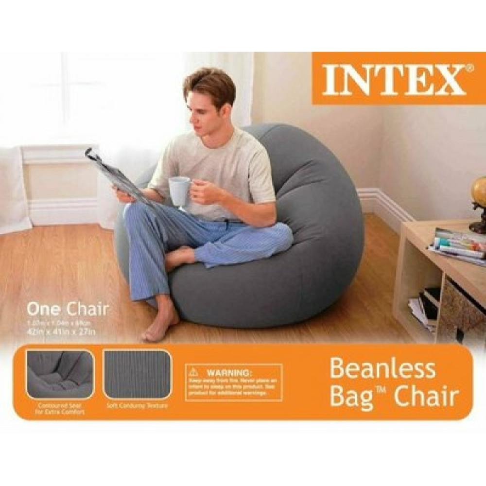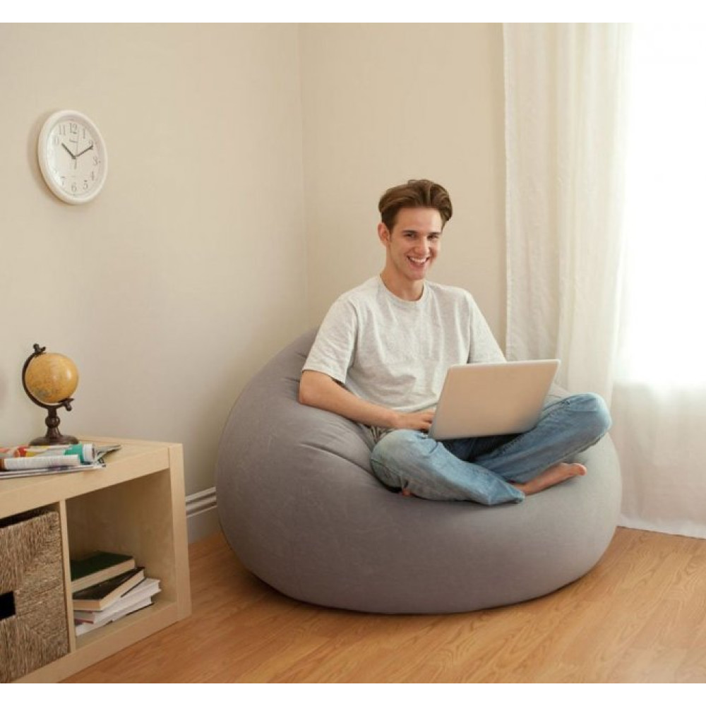 Якщо ви маєте свою власну дачу, вам просто необхідно здійснити вигідне і доступне придбання надувних крісел. Погодьтеся, набагато зручніше взяти з собою такі меблі, ніж перевозити металеві, дерев'яні або пластикові. Надувне крісло у вигляді мішка Intex виготовлене з якісного одношарового ПВХ з отворами.