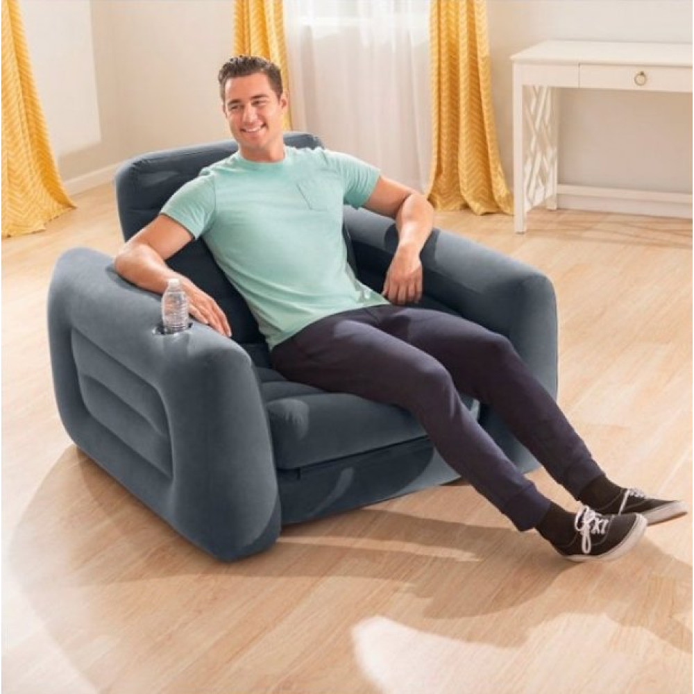 Дизайн у нейтральних сірих тонах виглядає акуратно та працює з будь-яким стилем інтер'єру приміщення. А головна перевага, висувне крісло Intex 66551 буде готове до використання всього за кілька хвилин.