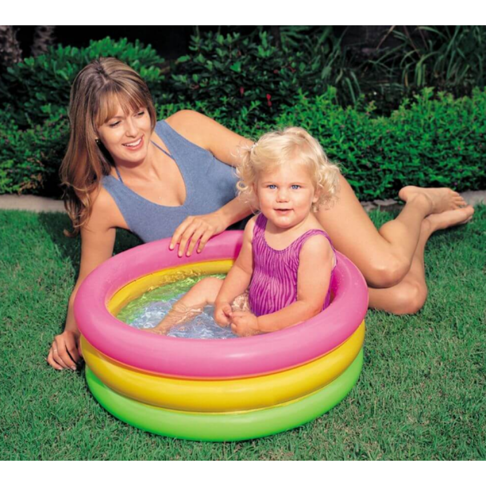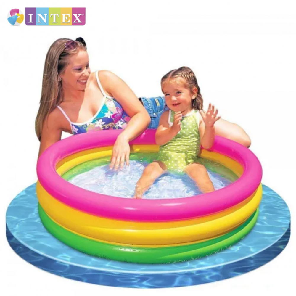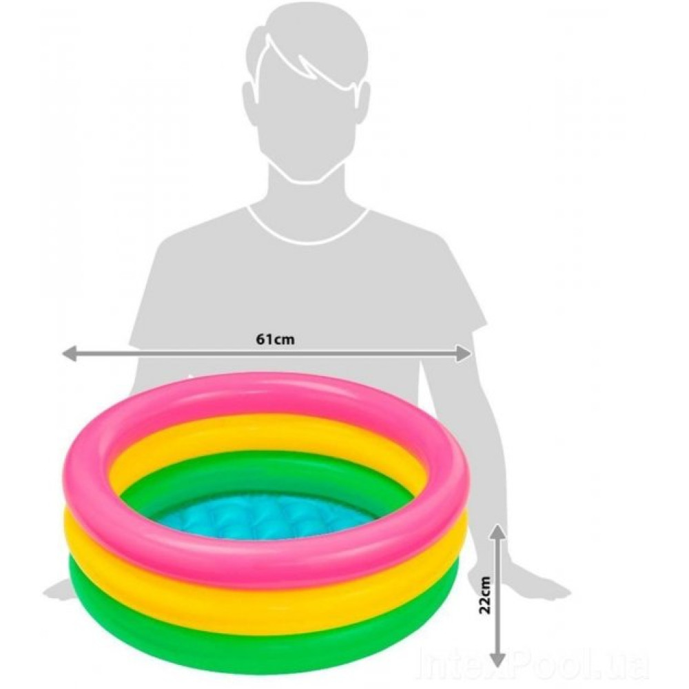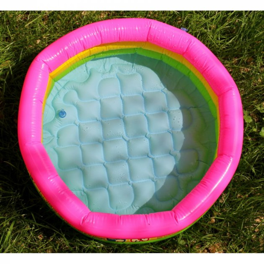 Бассейн Intex 57107 NP «Радуга» предназначен для самостоятельной игри детишек от 1 года. Объемние разноцветние надувние кольца, составляющие борта бассейна, делают его необикновенно симпатичним. Високие бортики обеспечивают комфорт и безопасность малишей. Материал – нескользящий и мягкий.