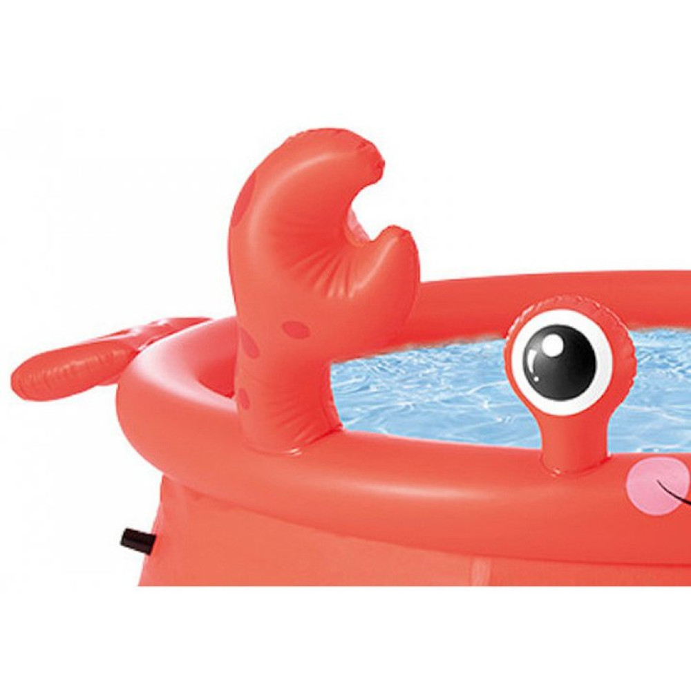 Басейн надувний 26100 виконаний у вигляді краба з надувними клешнями та витягнутими очима. Матеріал - тришаровий ПВХ: два шари ПВХ та шар скловолоконної сітки. Зливний клапан – передбачений.