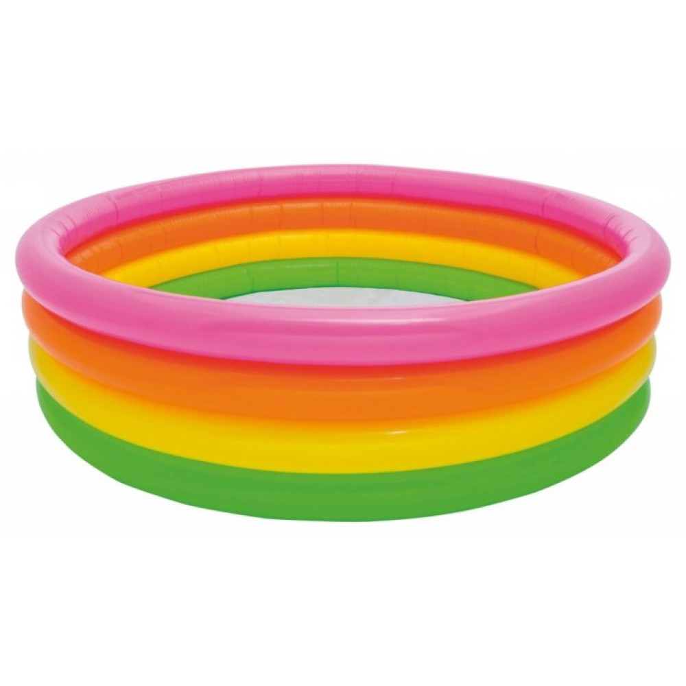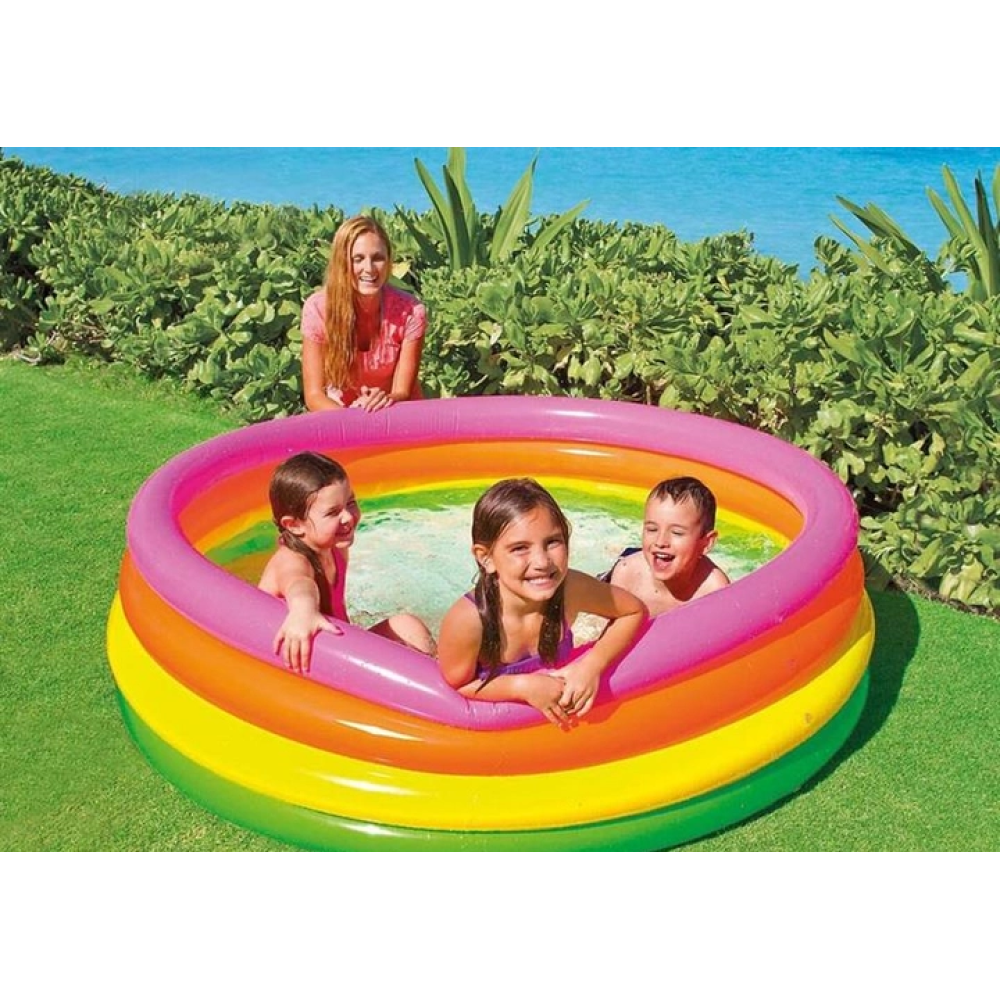 Басейн Intex 56441 призначений для безпечної гри дітей від 3 до 8 років. Високі борти та матеріал з м'якого, нековзного ПВХ забезпечують комфорт та безпеку малюків. Басейн складається з об'ємних кольорових надувних кілець, які роблять його дуже привабливим.