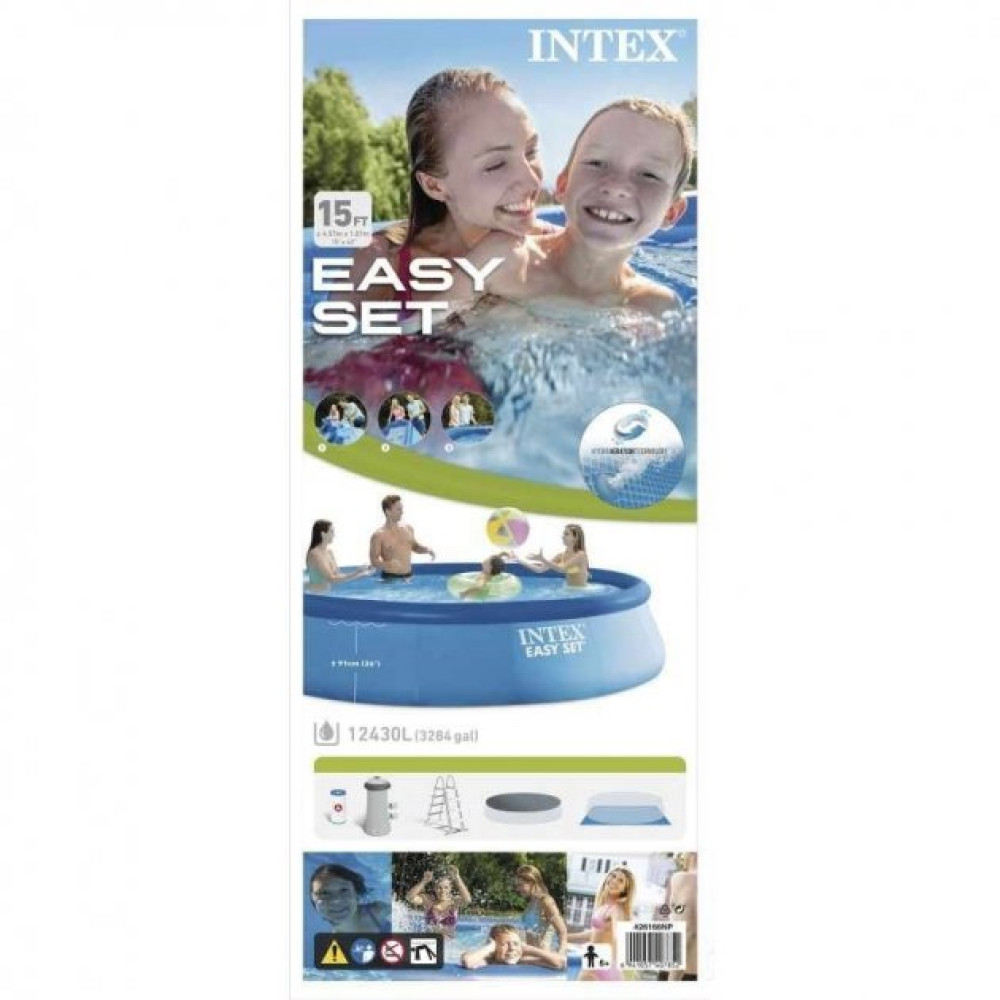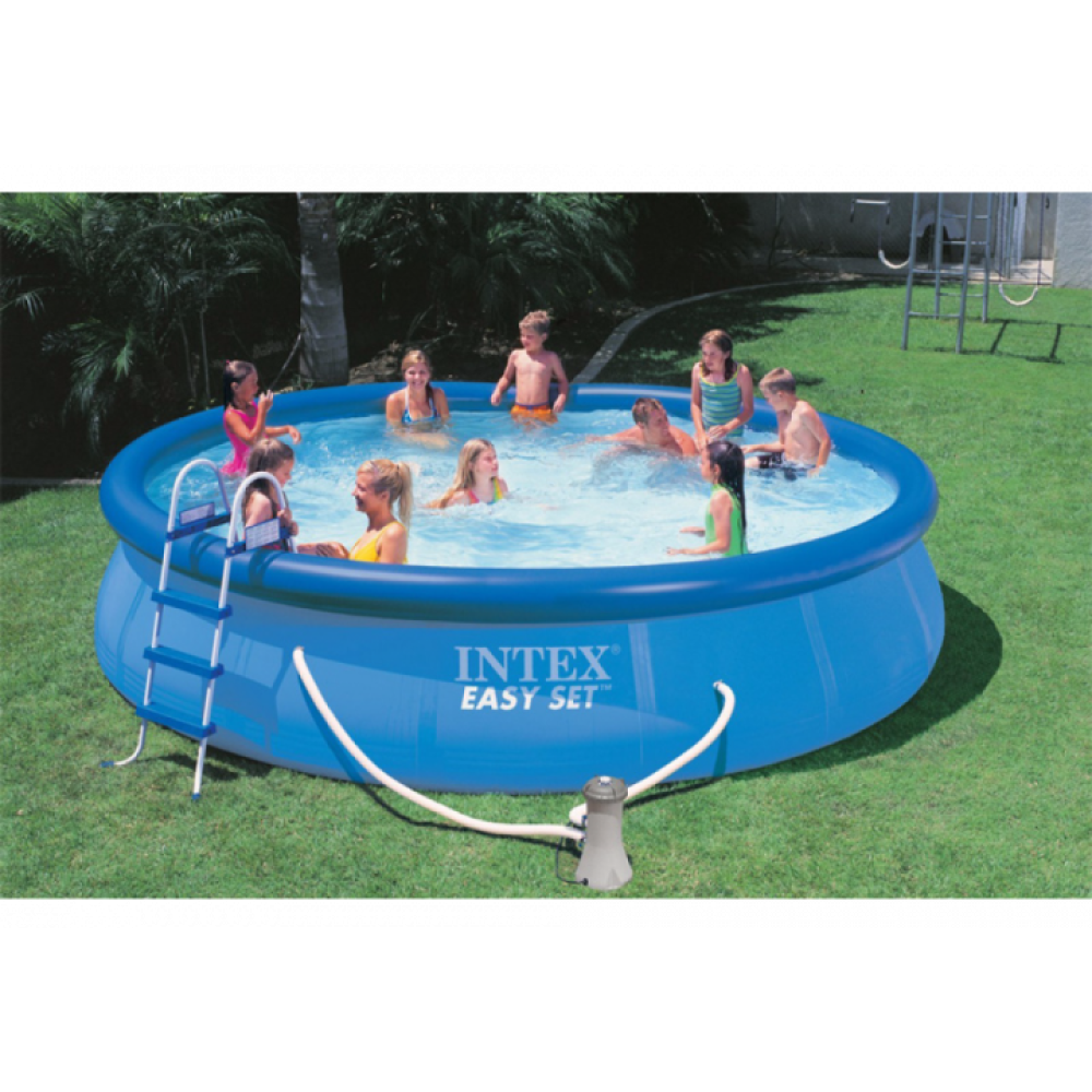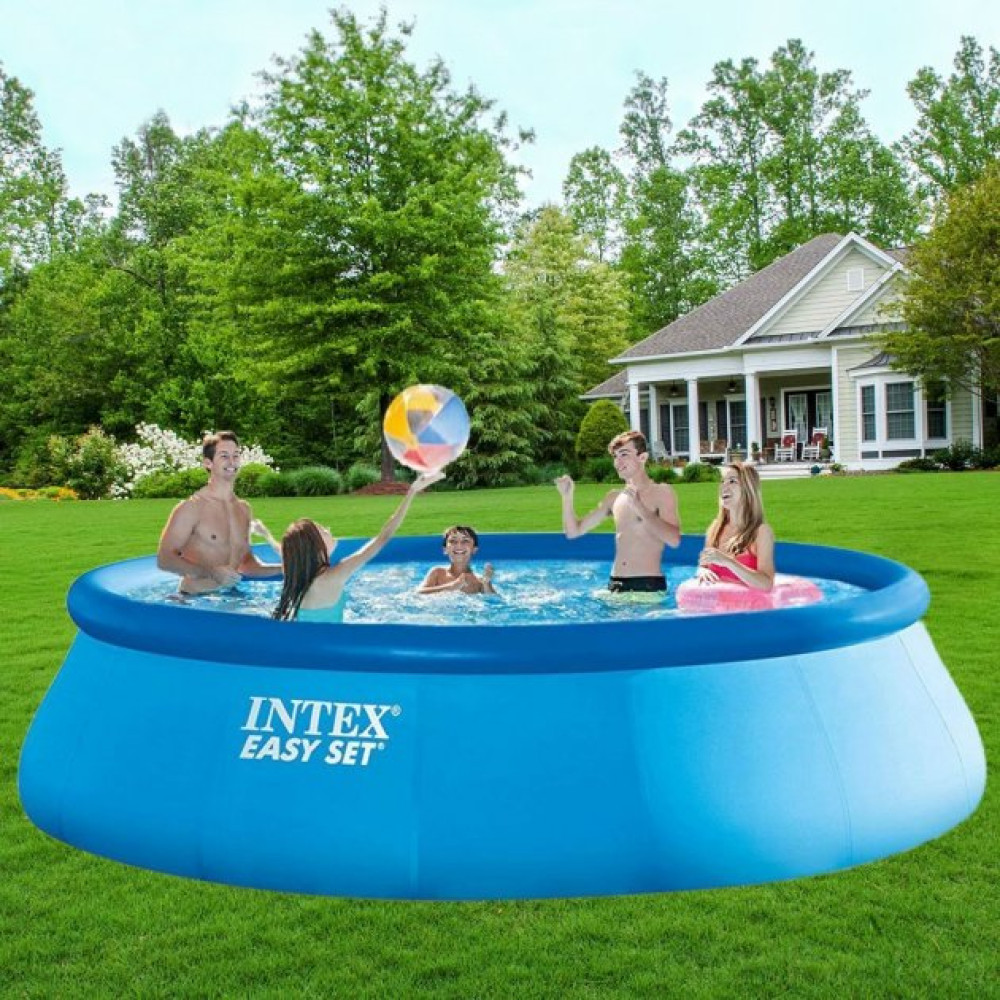 Басейн серії Intex легко та швидко встановлюється без застосування додаткових технічних засобів. Процес збирання басейну до наповнення його водою займає лише 10 хвилин. Надувний басейн виготовлений із високоякісного ПВХ синього кольору, технологія Super-Tough надає стінкам басейну потрійну міцність.