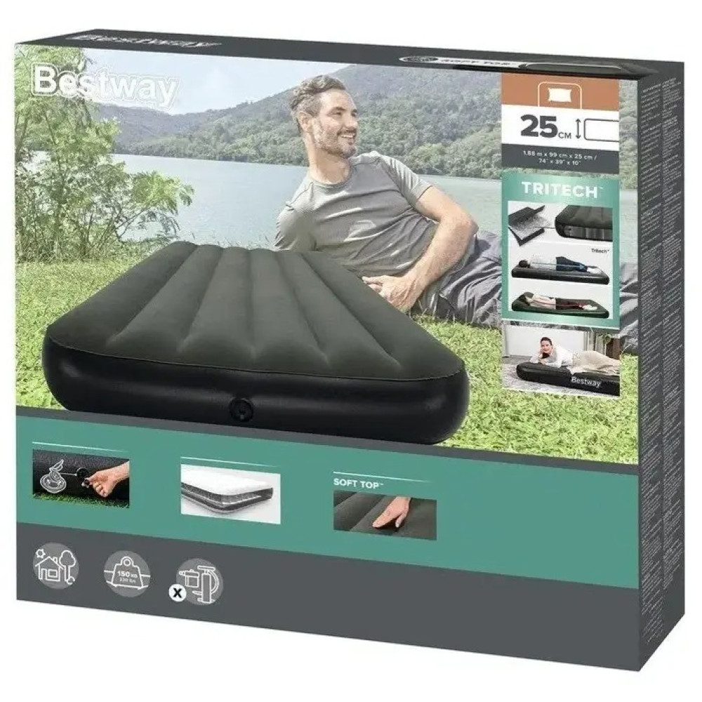 Прокидайтеся відпочилими та свіжими на надувному матраці Bestway® Tritech™! Цей полуторний матрац гарантує жорсткість, міцність та комфорт протягом усієї ночі. Компактний розмір робить його швидко підготовлюваним та зручним місцем для відпочинку, коли потрібно.