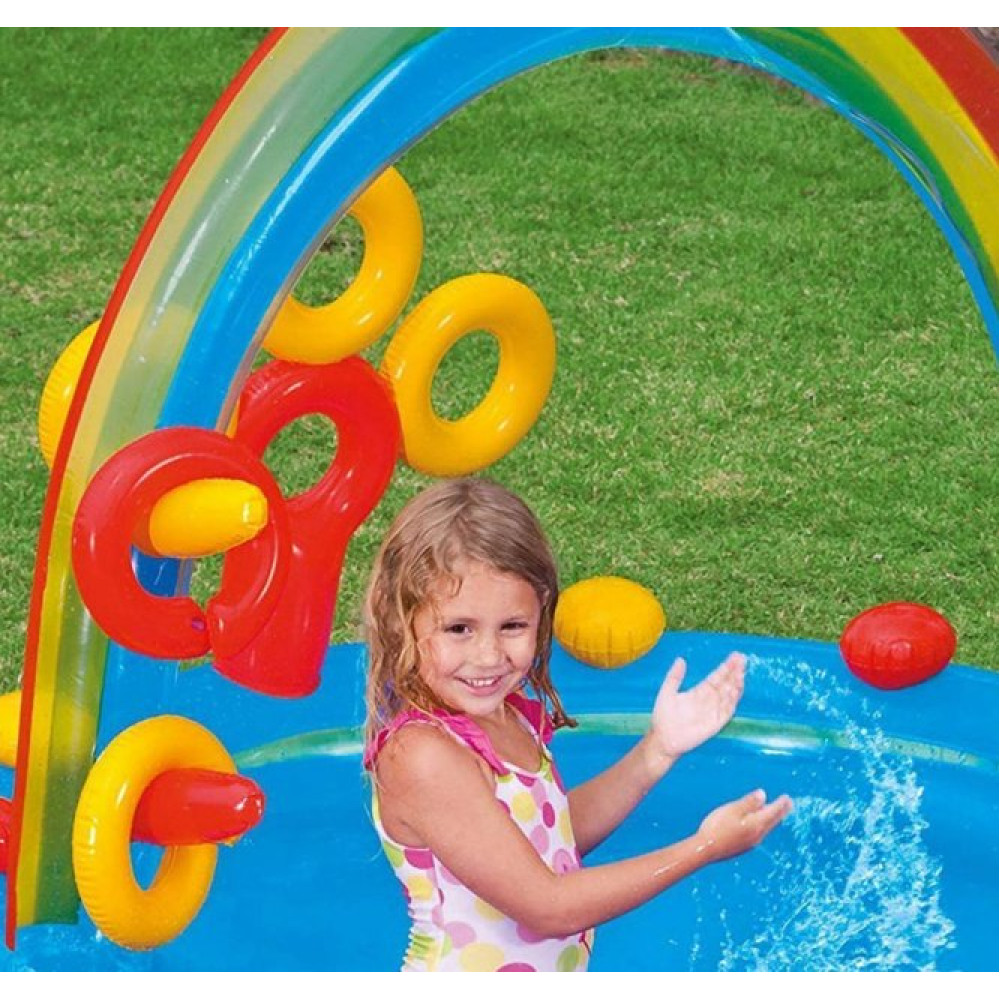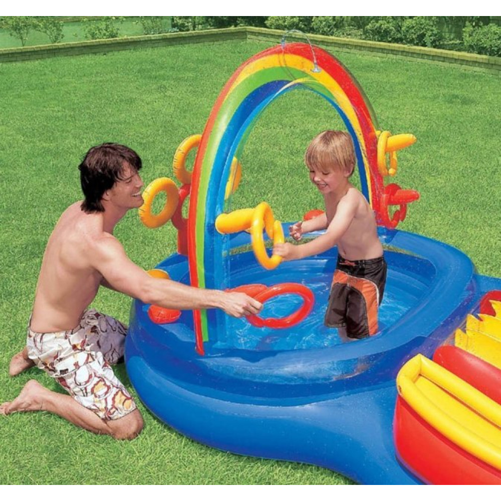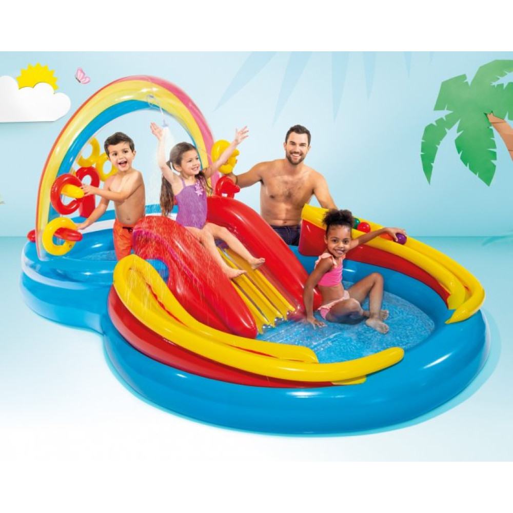 Надувний ігровий центр 57453 NP "Intex" "Райдуга" з гіркою та фонтаном - ідеальний варіант для спекотних літніх днів. Якщо у вас є заміський будинок – тоді ця надувна іграшка стане порятунком від літньої спеки та веселою забавою для ваших малюків.