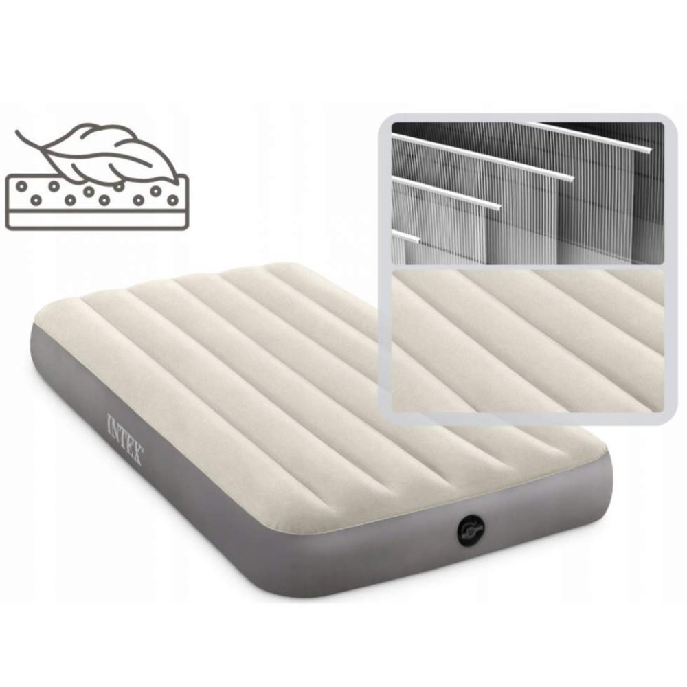 Зручний надувний матрац з підголівником Інтекс виготовлений відповідно до міжнародних стандартів та гігієнічних норм. Матрацом INTEX 64101 Deluxe Single-High зручно користуватися у будь-якій обстановці: тримати вдома, користуватися на дачі, брати із собою на природу. Надувний матрац надійний, компактний та зручний. Кращий вибір, якщо ви шукаєте універсальну річ як для домашнього комфорту, так і для відпочинку на природі.