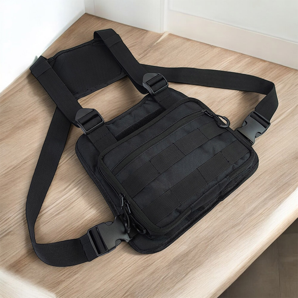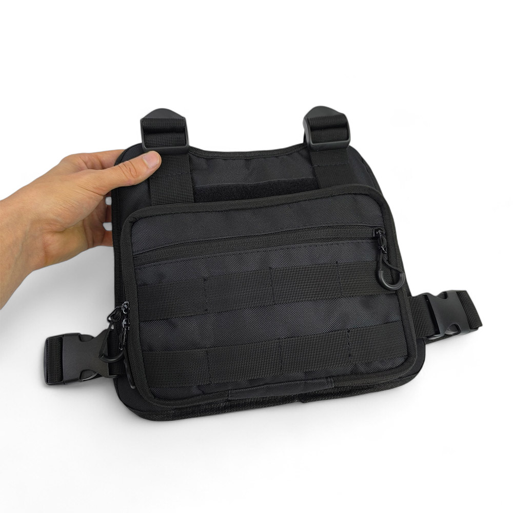 Сумка нагрудна досить містка. У неї легко поміститися телефон, ключі, гаманець та інші потрібні дрібниці, причому ви зможете бути на 100% впевнені в їх збереженні: вони завжди будуть у вас перед очима, і в потрібний момент дістати якусь річ зовсім не важко.