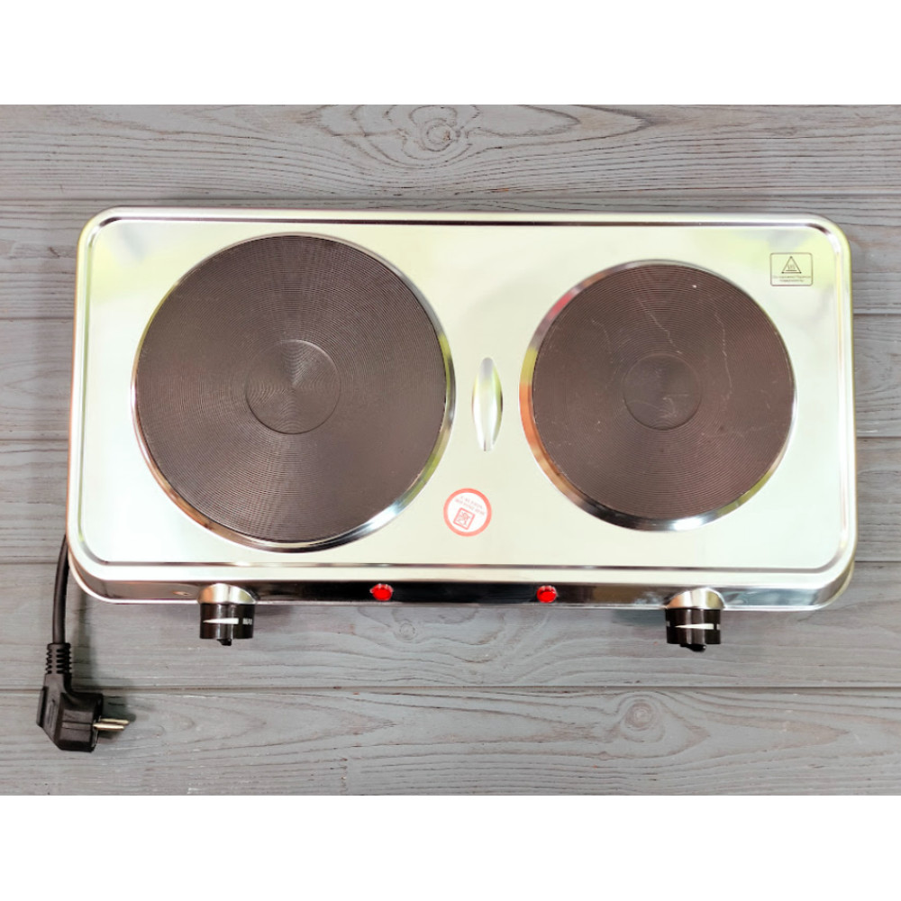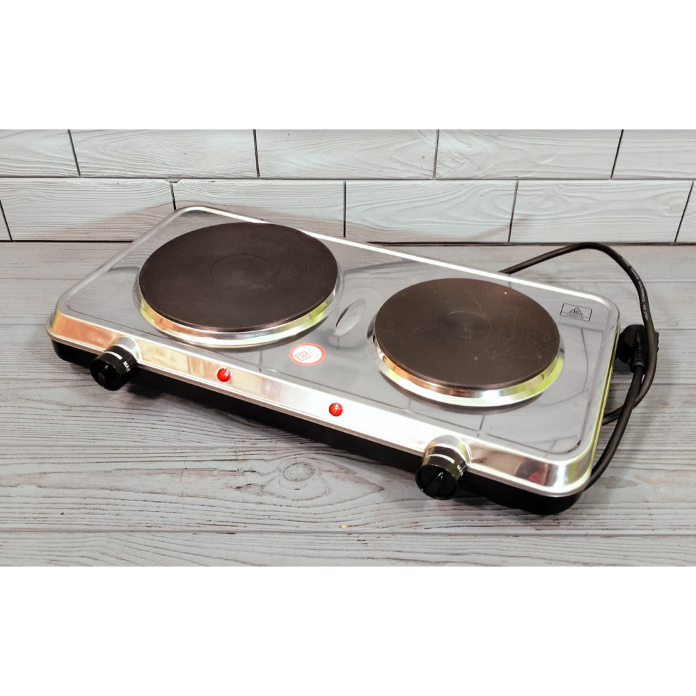 - Плита має дві конфорки, з дисковим нагрівальним елементом.