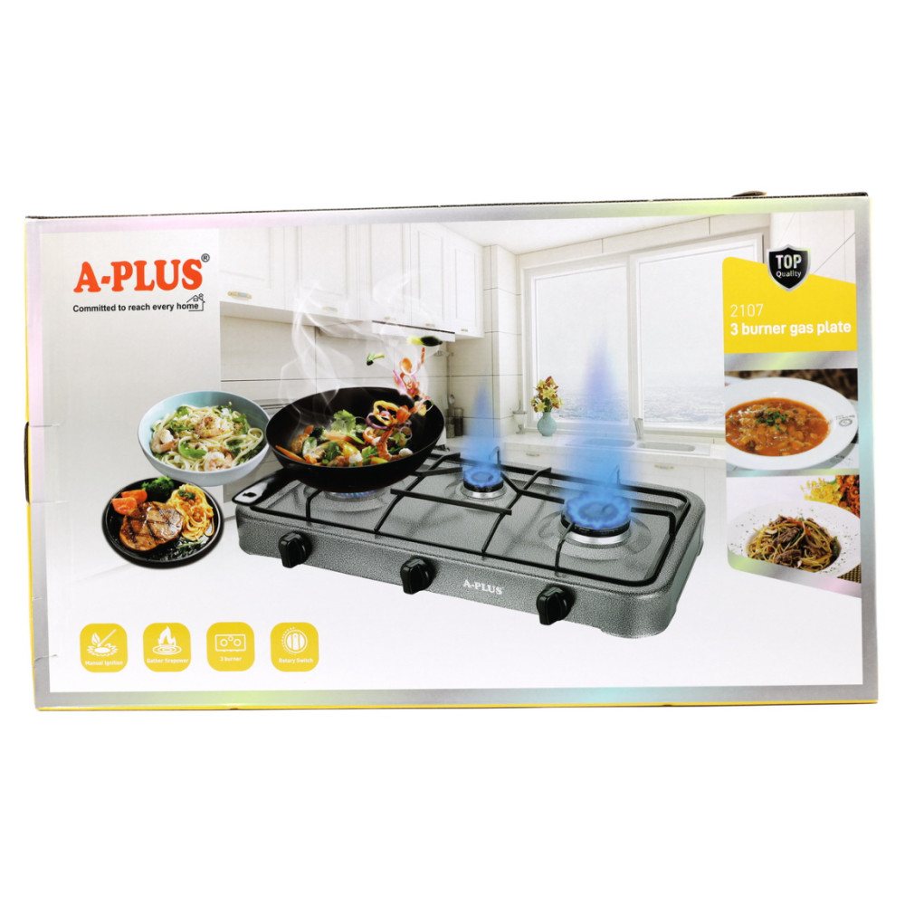 Настільна газова плита A-PLUS 2107 призначена для приготування їжі у побутових умовах від зрідженого (балонного) газу.
