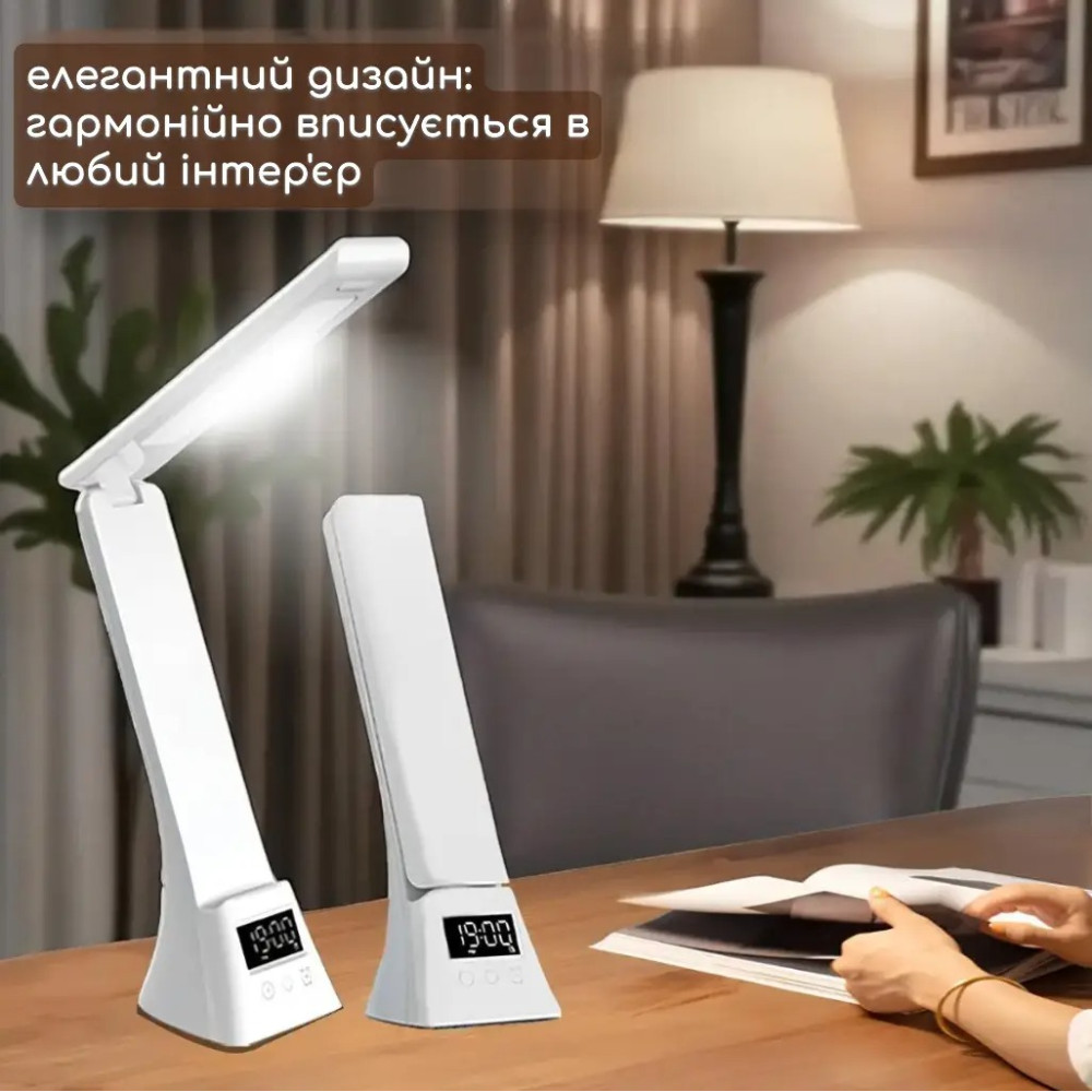 - Лампа настільна LED з годинником і бездротовою зарядкою для телефона