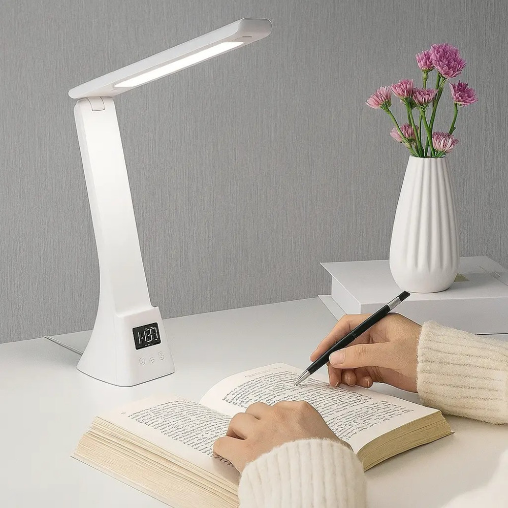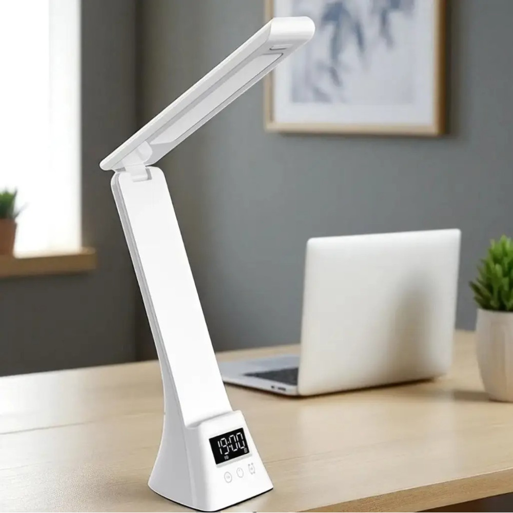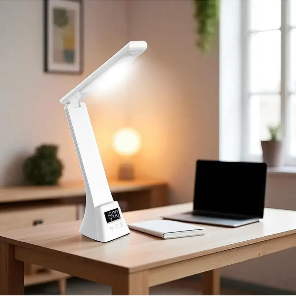 LED настільний світильник – це сучасне та універсальне рішення для вашого робочого столу або тумбочки. Він поєднує в собі яскраве світлодіодне світло, зручний годинник та функцію бездротової зарядки, пропонуючи максимальну функціональність в елегантному дизайні. Ідеально підходить для дому та офісу.