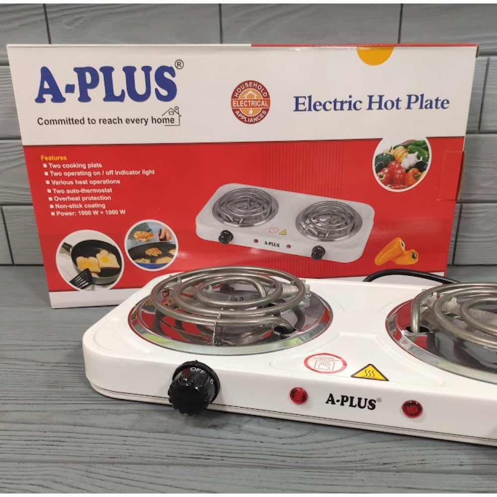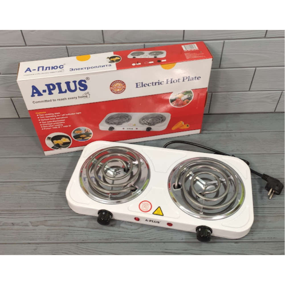 Плита електрична А-плюс AP-2102W — компактна двоконфорна плита, проста у використанні та має зручне механічне керування. Достоїнствами даної настільної електроплити є компактний розмір, сучасний ергономічний дизайн і невелика вага, яка робить її дуже мобільною. Корпус електроплити виготовлений з нержавіючої сталі.
