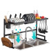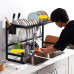 - міцна стійка - сушарка для посуду над раковиною виготовлена з нержавіючої сталі, а також покрита шаром чорної фарби, антикорозійної, що утримує посуд та кухонне начиння, тому ви можете сміливо покласти весь посуд у необхідні лотки. Вода капає в раковину під час висихання, зберігаючи стільницю чистою та сухою. Завдяки 2 гумовим присоскам на дні полиця для посуду не хитатися по стільниці.