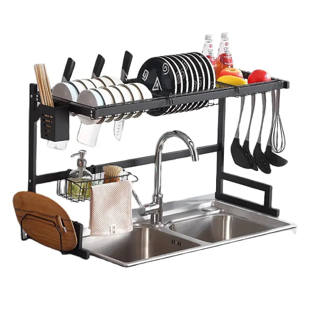- багатофункціональна сушарка для кухонного посуду - полиця для сушіння посуду над раковиною забезпечує чистоту та легкість висихання всього посуду та столових приладів. Полиця для сушіння посуду вміщує багато речей, ви можете: поставити миску/тарілку або овочі/фрукти у стійку, взяти кухонний ніж/оброблювальну дошку/кухоль/ложку або поставити миючий засіб у тримач або повісити лопатку/серветку для посуду на гачок. Найкращий кухонний органайзер для зберігання та економії місця не тільки для великої кухні, але й для маленької кухні.