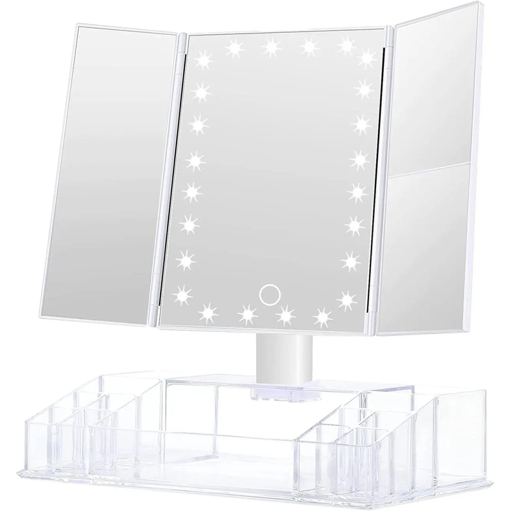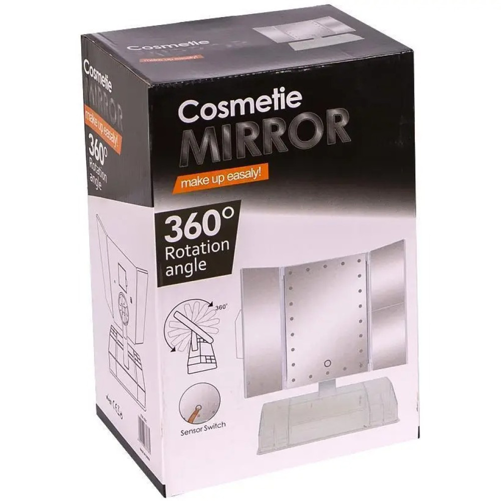 Потрійне дзеркало з LED підсвічуванням та підставкою для косметики – це чудовий інструмент для нанесення макіяжу та створення ідеального макіяжу.